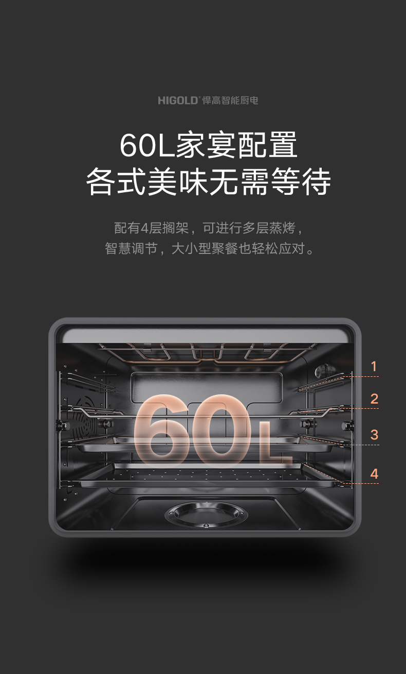 ▪ 5,0kW爆炒大火力,一级能效 60L超大容量,食品级304不锈钢内胆