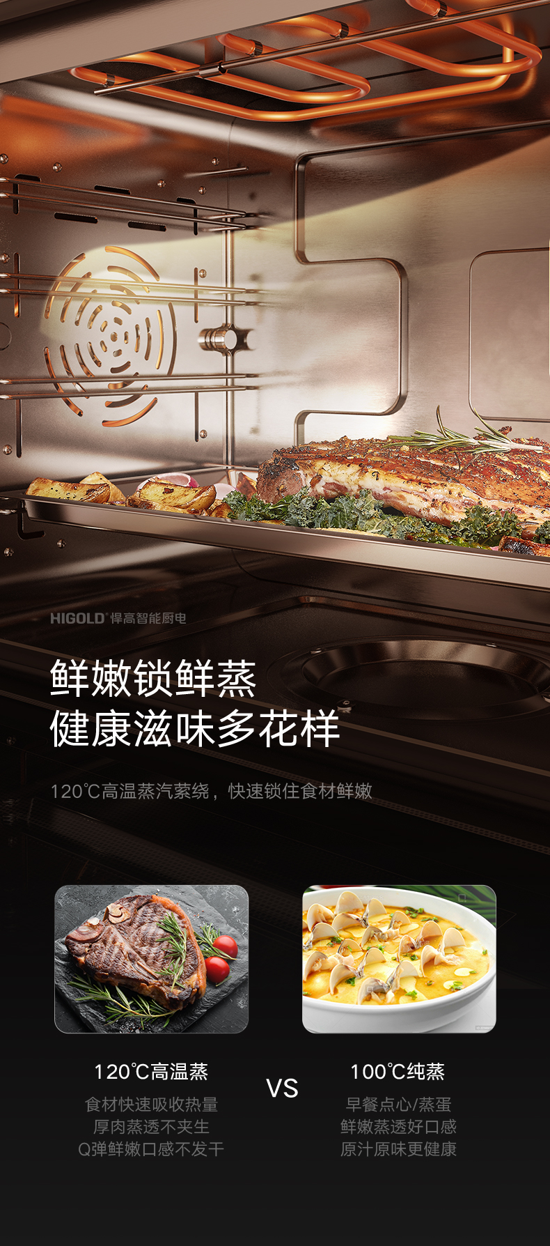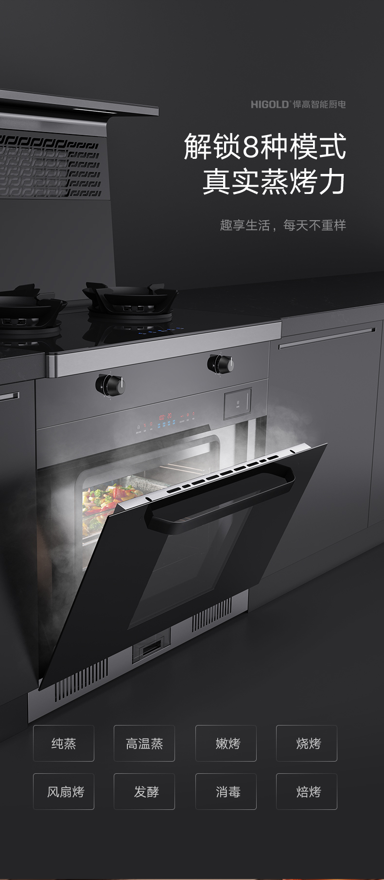 ▪ 解锁8种蒸烤模式,120°C高温蒸