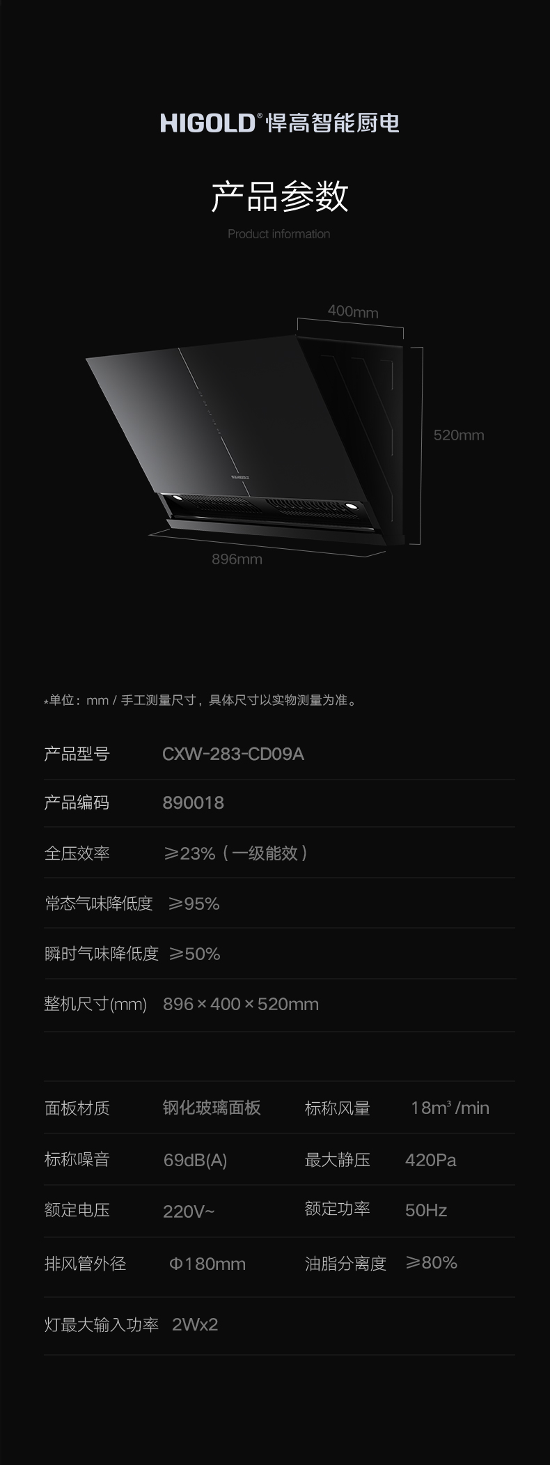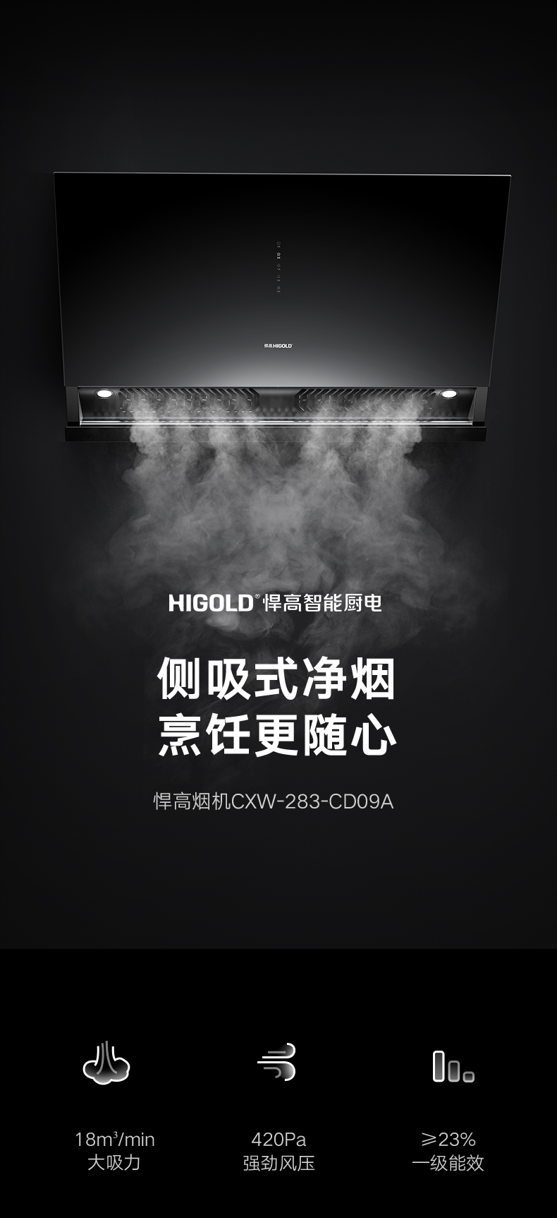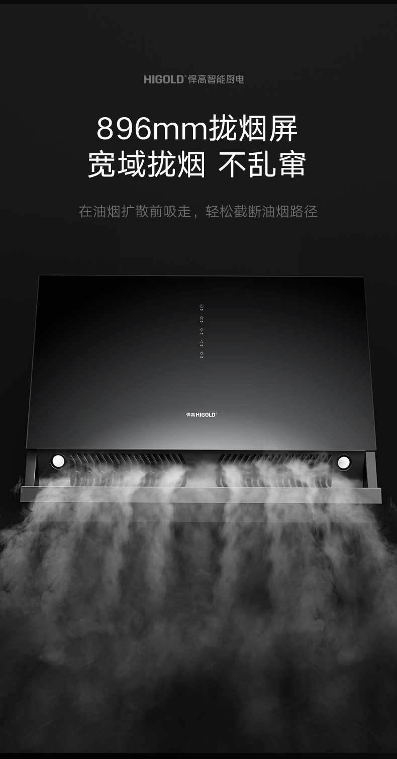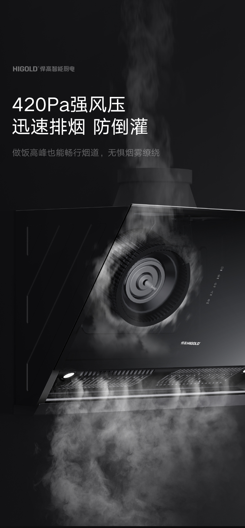 ▪ 侧吸式下进风,油烟不外溢,烹饪更随心,