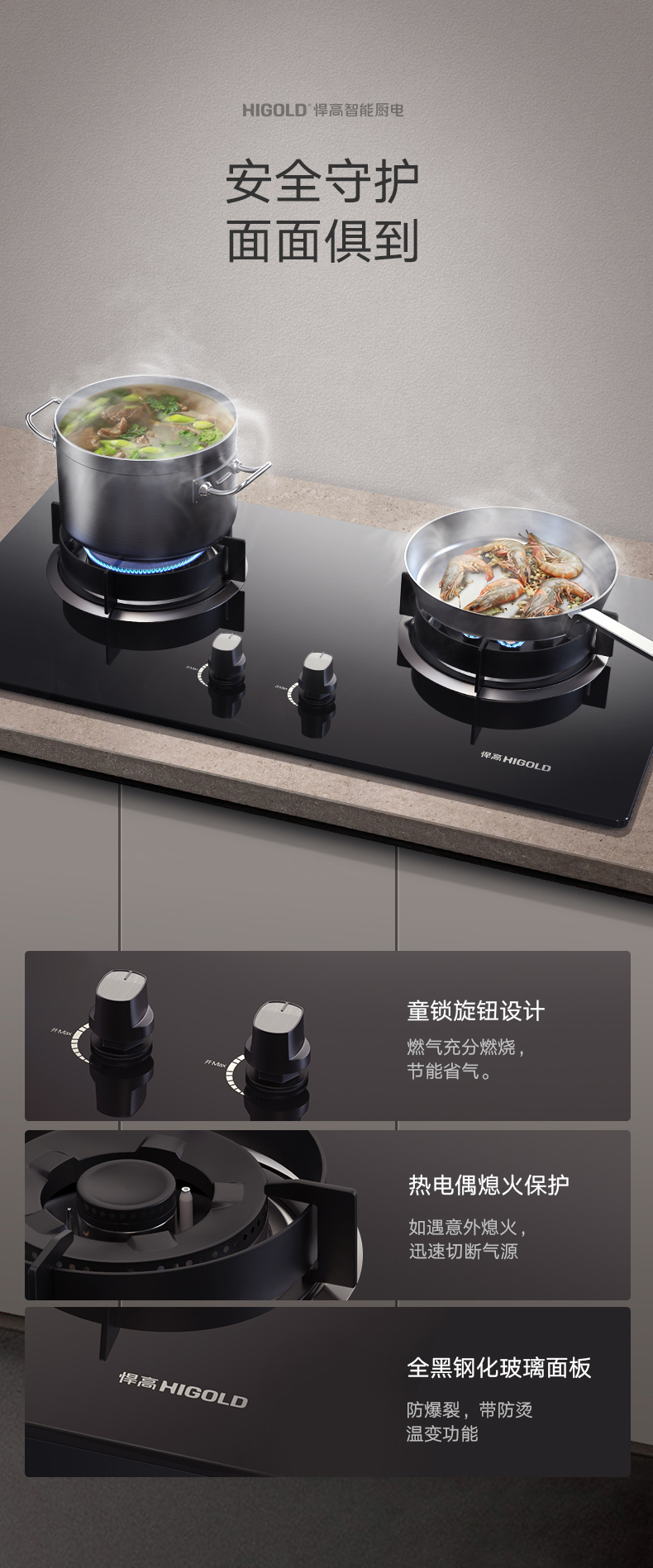 ▪ 电子脉冲点火,熄火保护,安全可靠