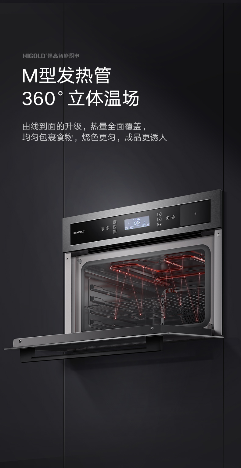 ▪ 220°C多维立体高温烘烤,上方M型内外发热,下方隐藏发热