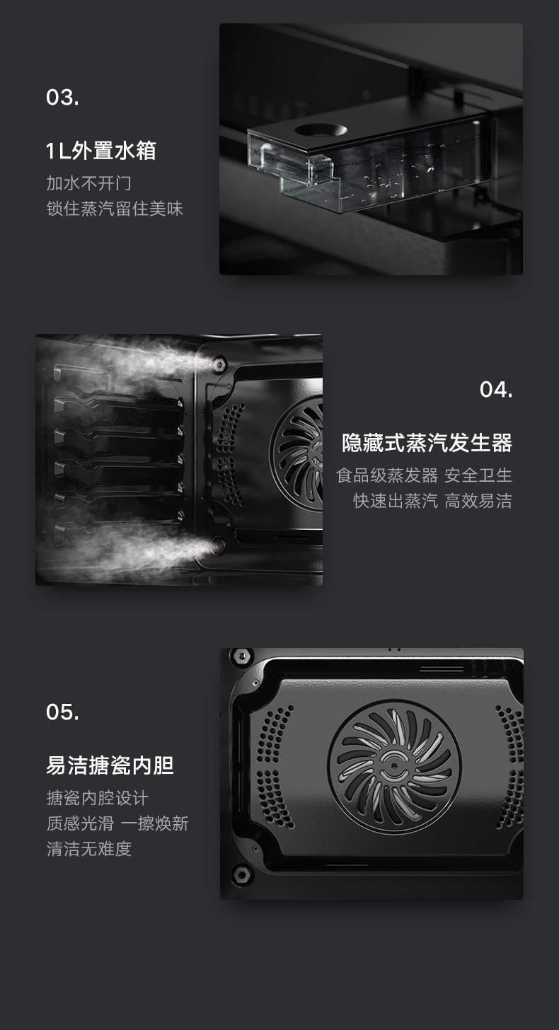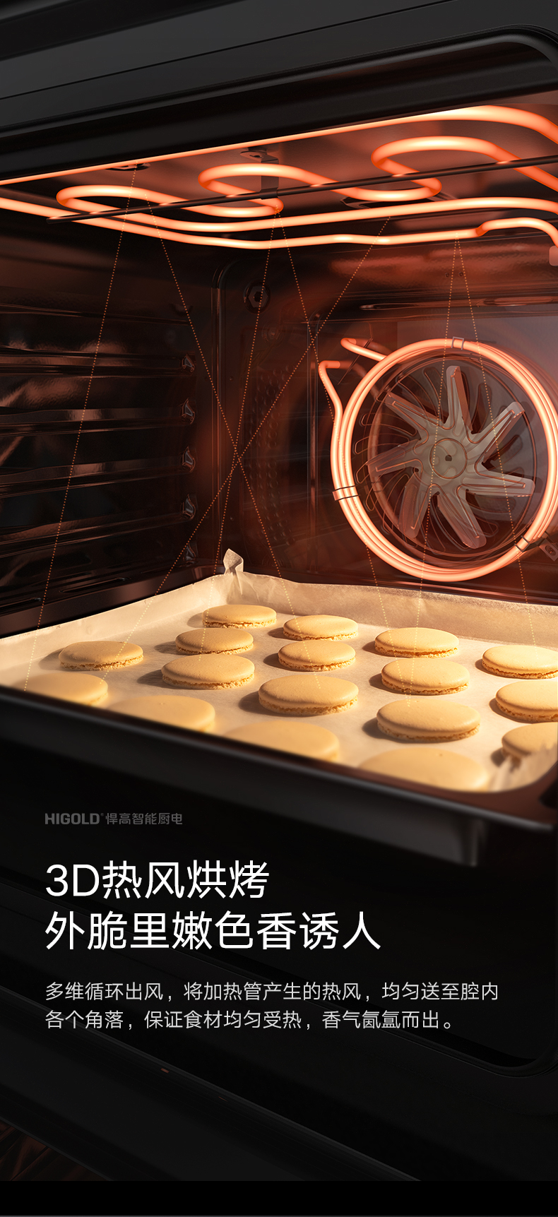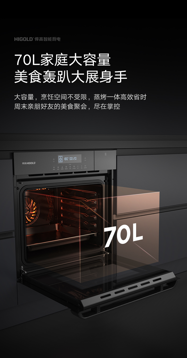 ▪ 上下独立发热管+3D循环热风 触摸式按键操作