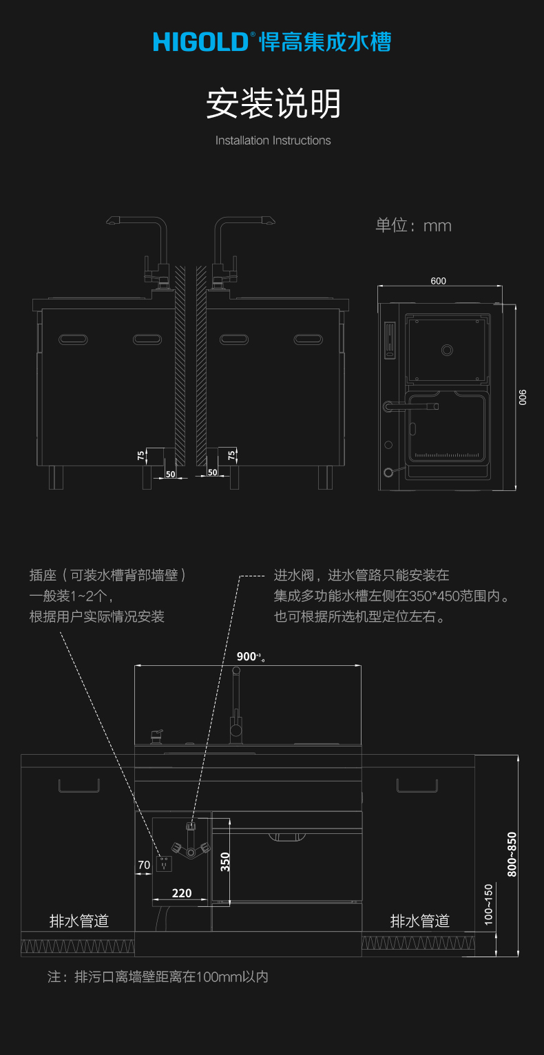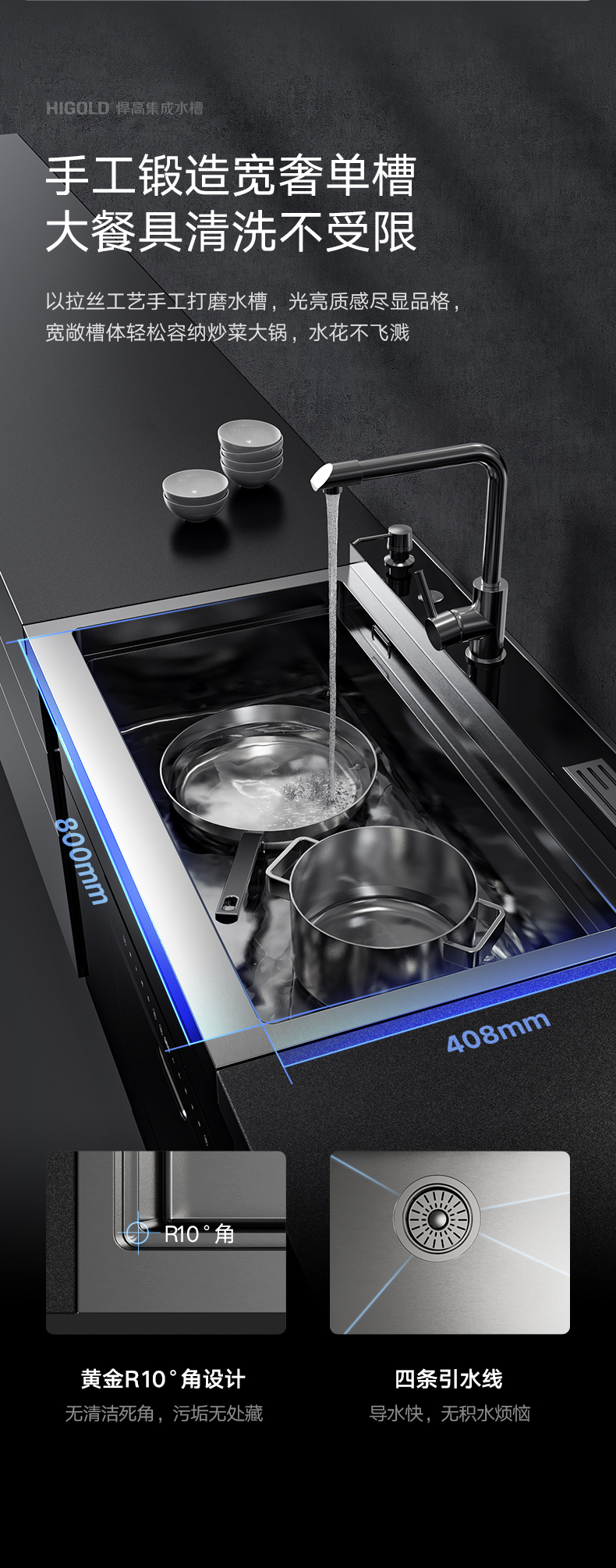 ▪ 纯手工无缝焊接304不锈钢子母水槽
