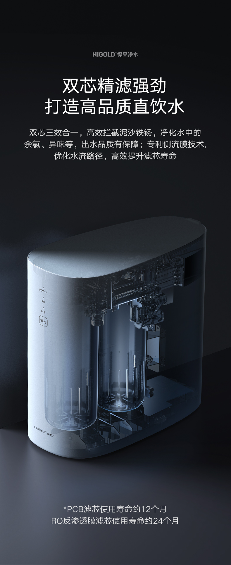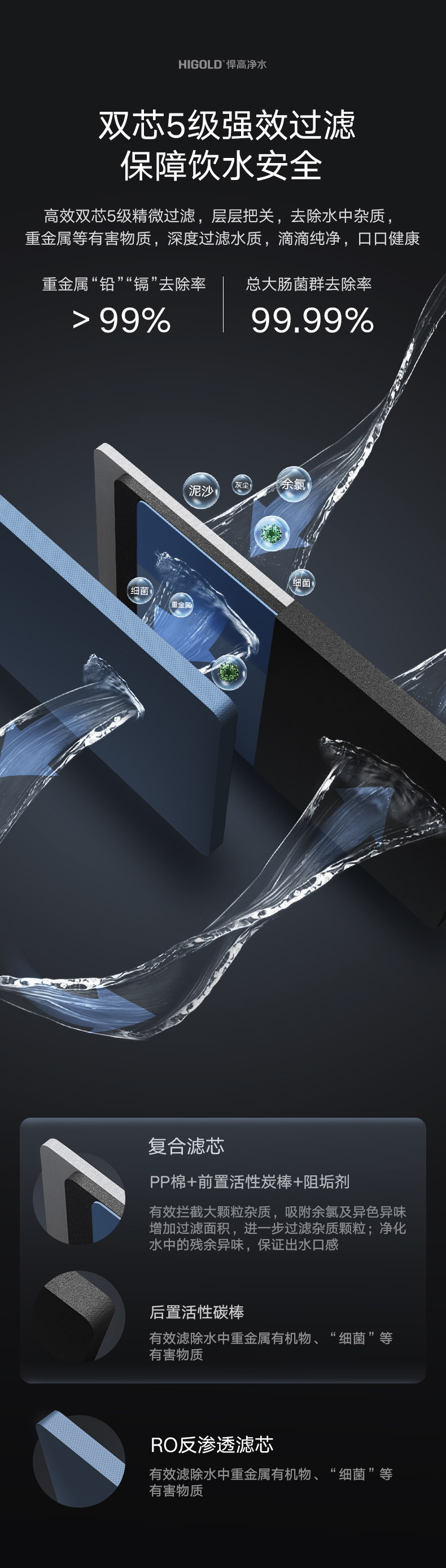 ▪ 双芯五级高效精微过滤,深层过滤水质