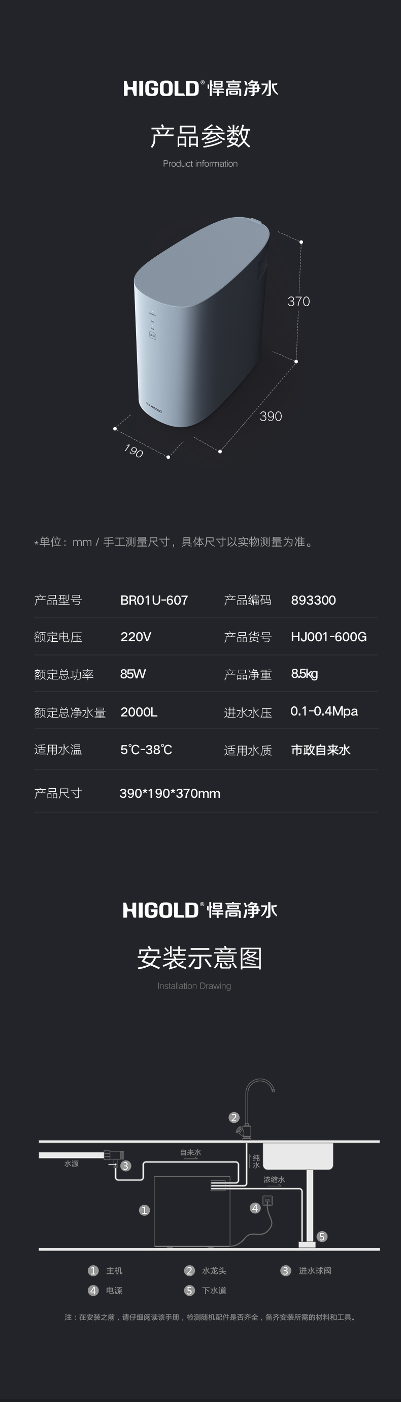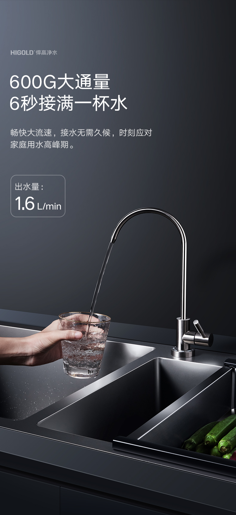 ▪ 600G大通>1.6L/min出水量,2: 1低废水比