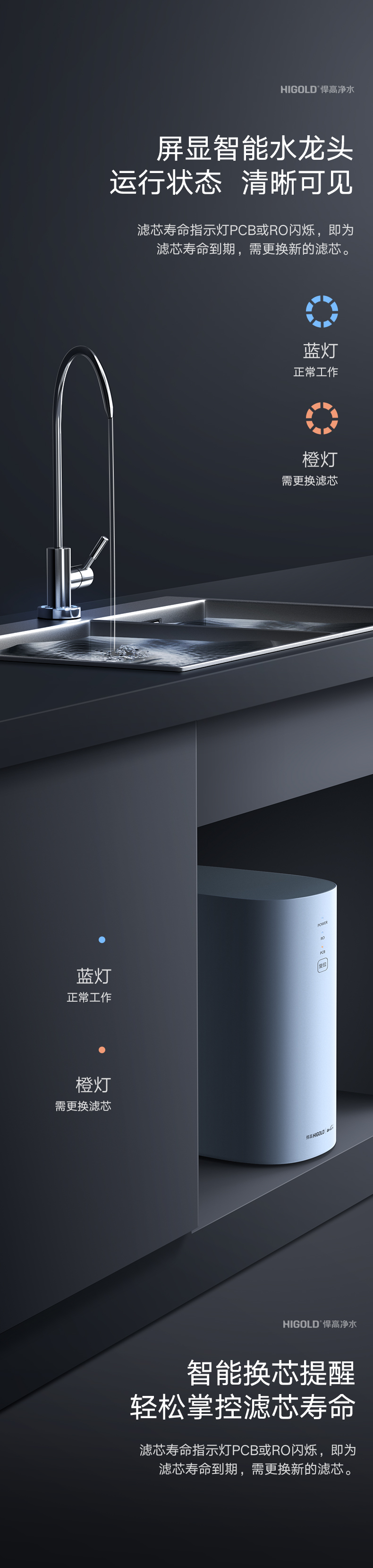 ▪ 不锈钢净水龙头,带智能换芯提醒光环