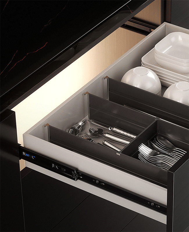 三节轨-厨房功能五金系列产品-L系列反弹阻尼钢珠三节轨-厨房功能五金