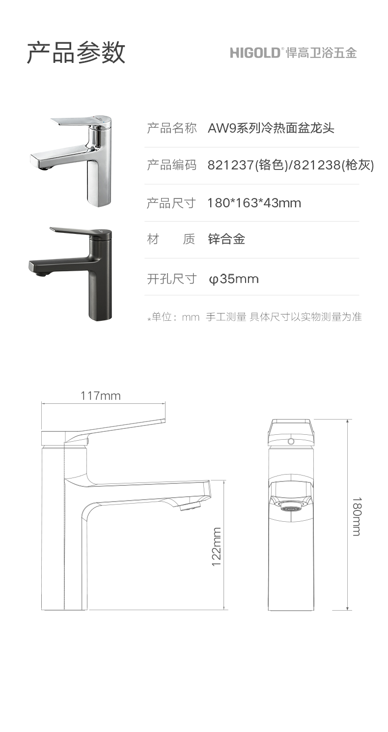 悍高AW9系列冷热面盆龙头