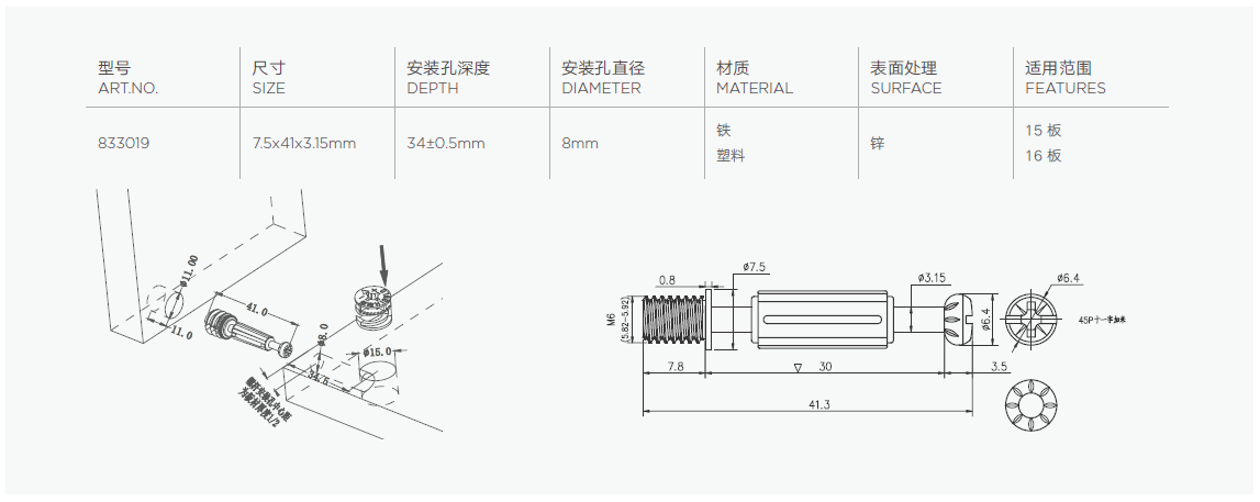 无需预埋螺母,适用于密度高的板材