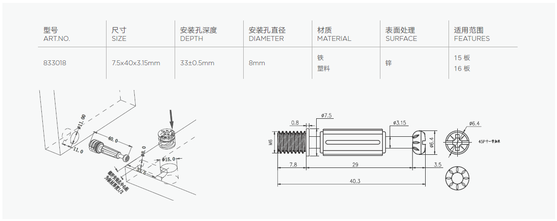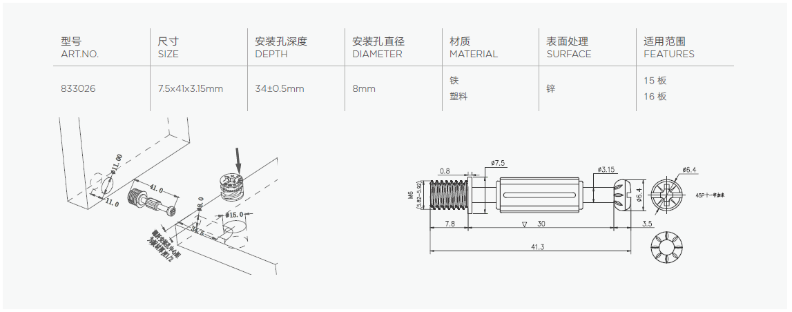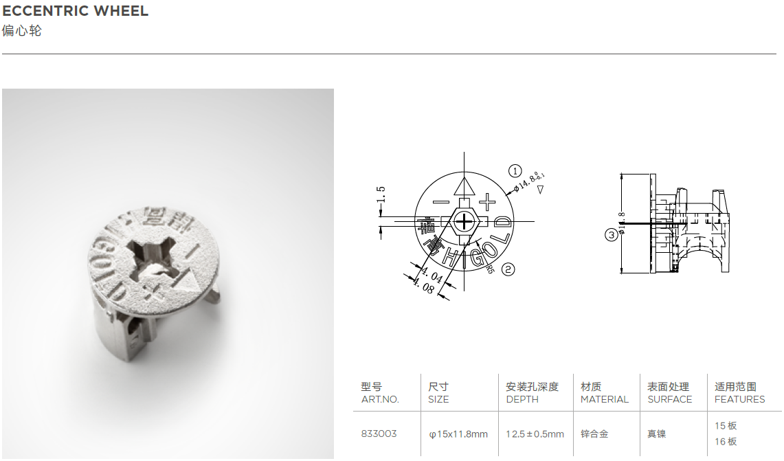 无需预埋螺母与偏心轮,适合高密度的高端板材使用
