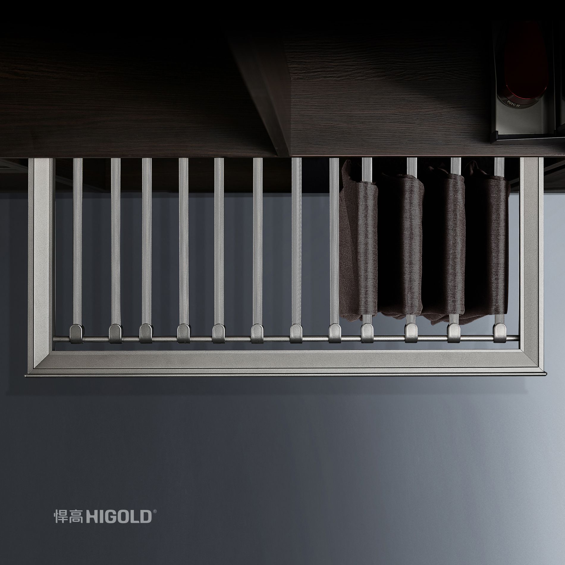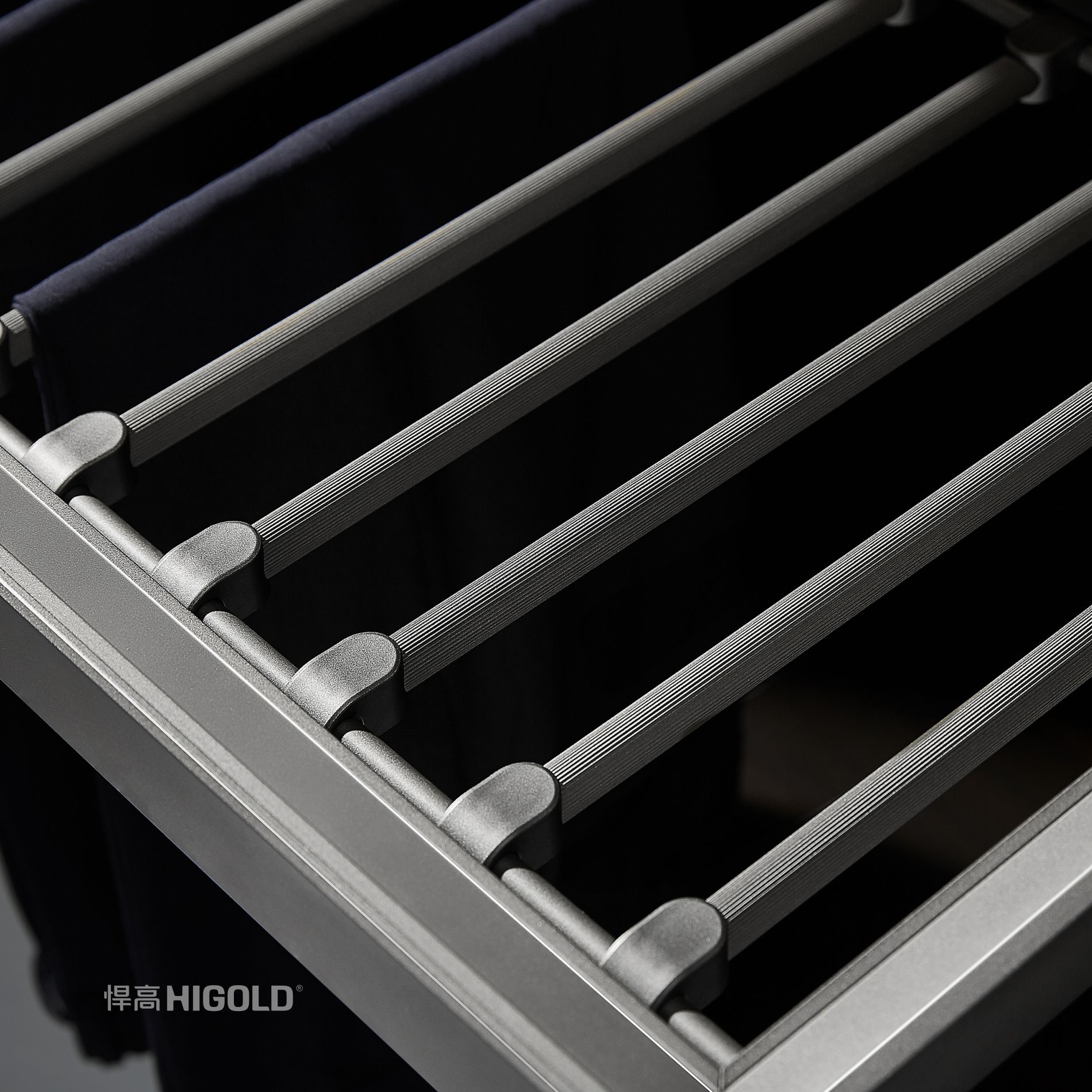 设计:采用变色龙仿生手型设计,让可调挂杆对主体的抓爬表现更好更稳定,且调节更顺畅轻松。原创大R设计,保护衣物饰品免刮花。内置防滑条,使裤子防皱不滑落;魔术贴设计,便捷安装,左右微调,打破柜体限制。