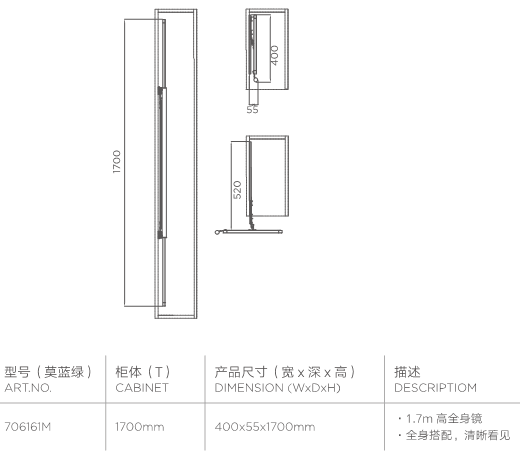 【BV系列-加高全身镜】加高高度,清晰展示身上每个小配饰的整体搭配效果。