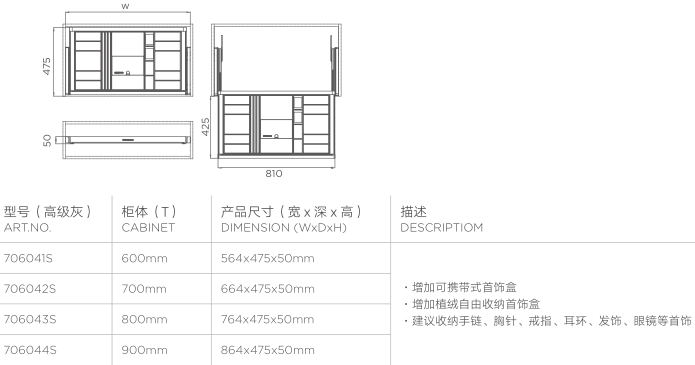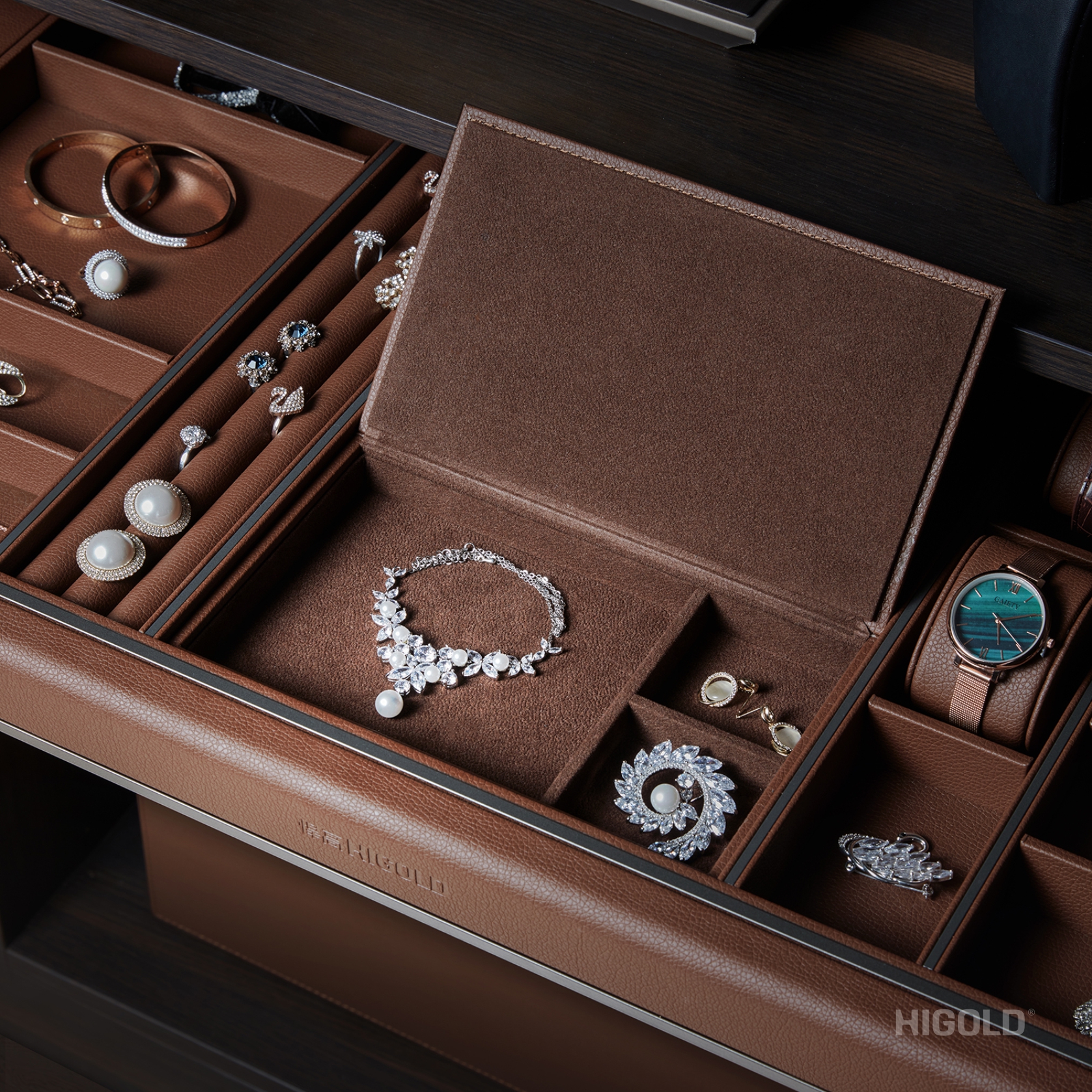 • 建议收纳手镯、手链、胸针、戒指、耳环、手表、发饰、眼镜等首饰