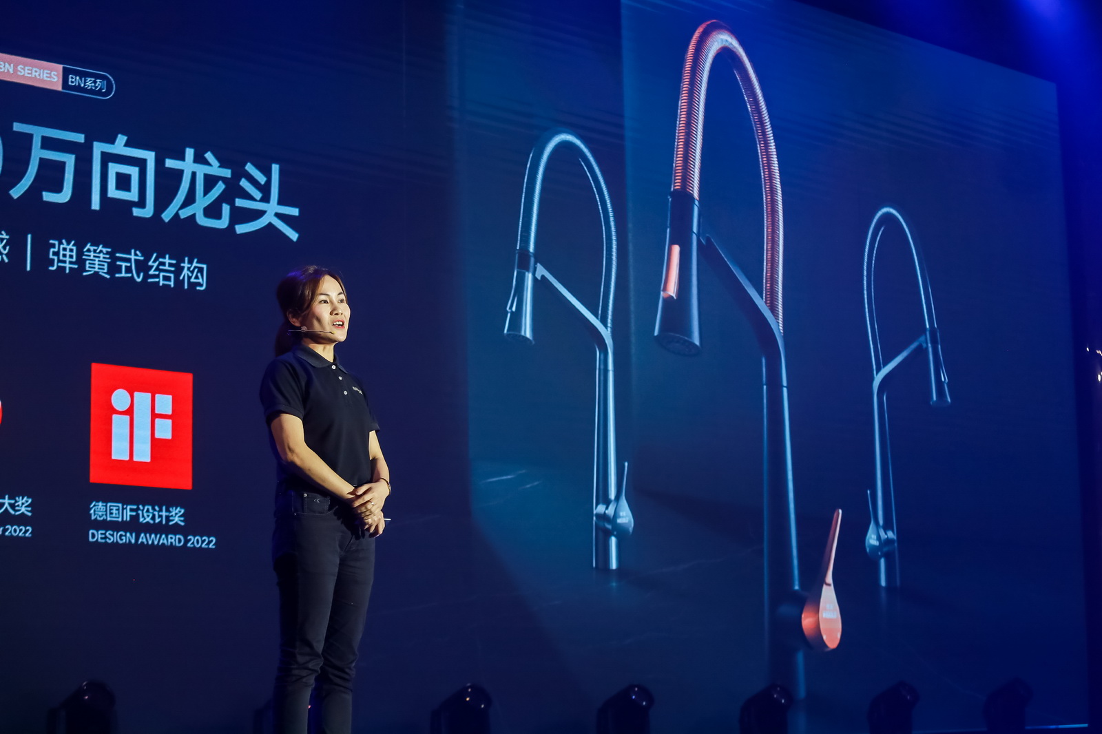 当数款荣获国际大奖的产品出场时,引得现场观众纷纷拍照记录:打破国外品牌同类产品在国内十几年的技术垄断并获得国家知识产权局颁发的发明专利证书的飞碟3.0、斩获红点设计大奖和IF设计大奖双项国际设计大奖的希勒4.0、以及汇聚原创工匠艺术与实用功能设计于一体悍高水龙头BN2.0。