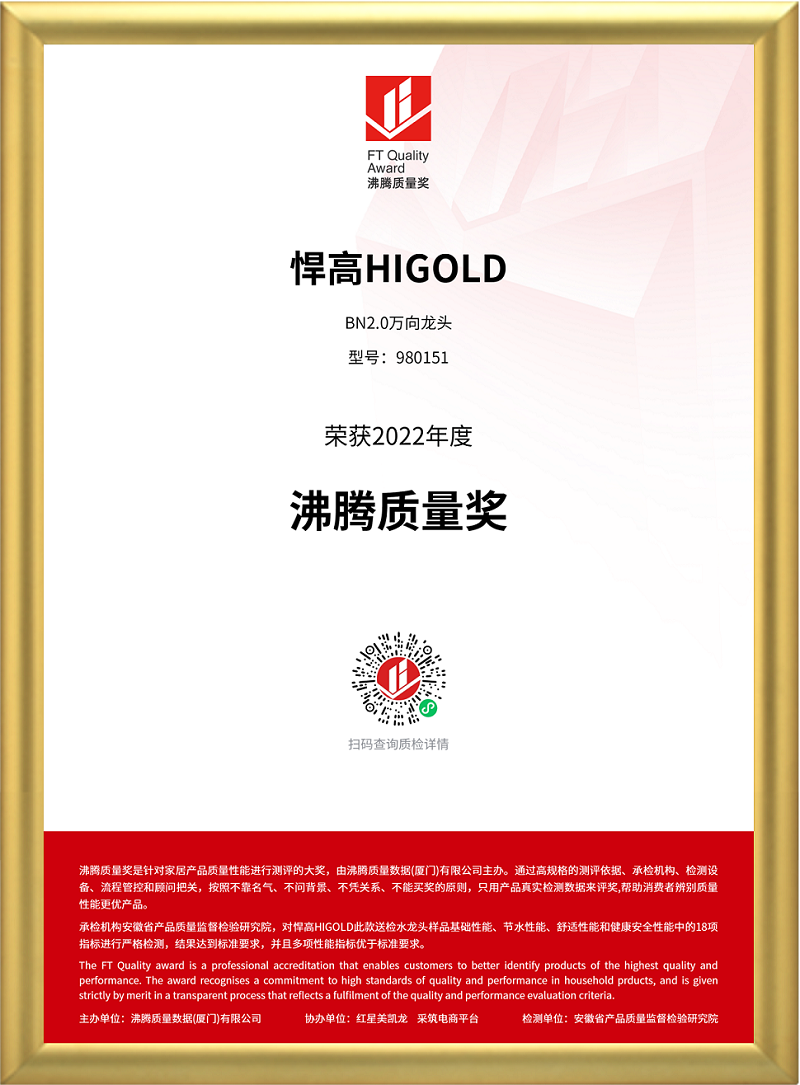 近期,2022上半年度沸腾质量奖获奖结果重磅揭晓。悍高凭借卓越的产品质量,从国内外一众家居品牌中脱颖而出,参评的BN2.0万向龙头和NN系列水槽组合套装双双荣膺2022“沸腾质量奖”,再次印证悍高品质硬实力。