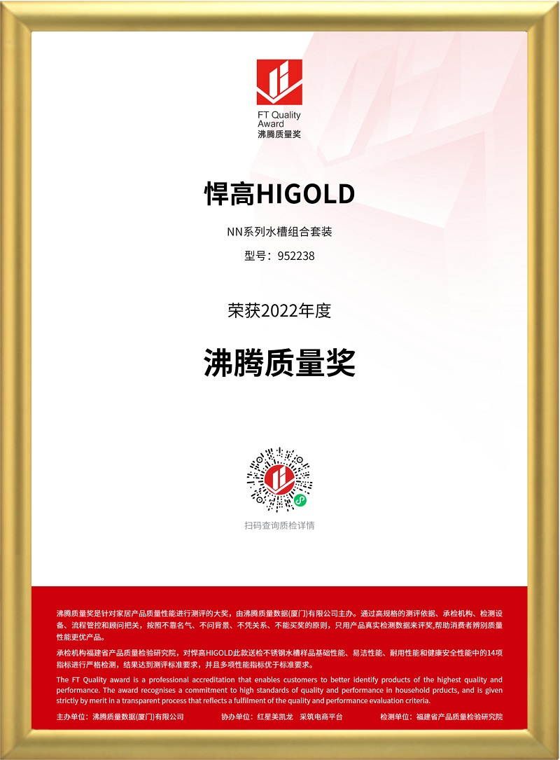 健康,耐用,易洁,NN系列水槽组合套装以卓越性能赋予“质量”新定义,荣获该奖实至名归。