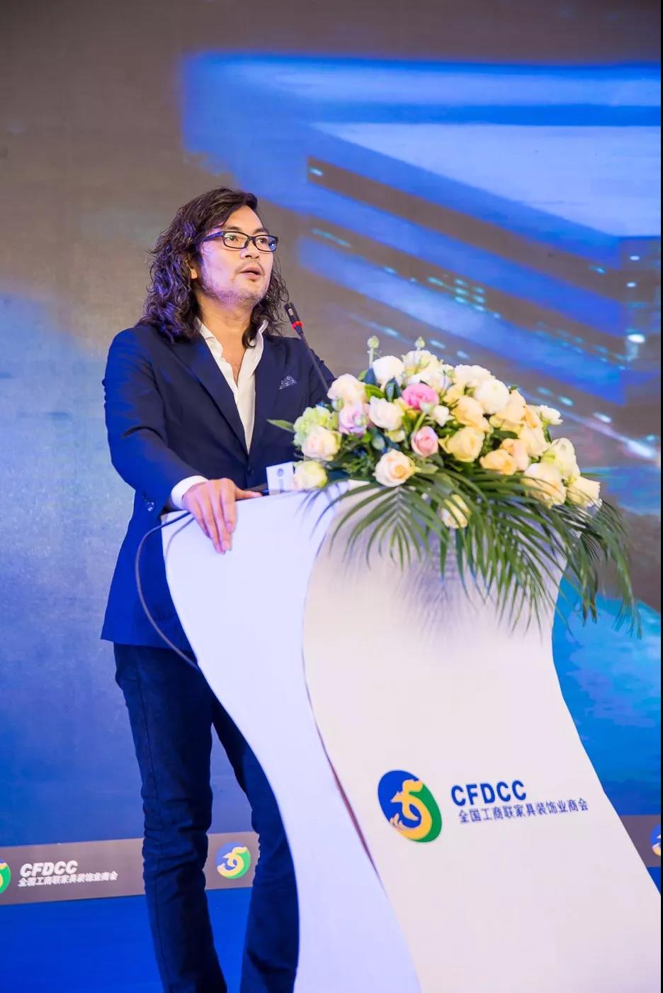▲悍高欧董在台上作致辞,展望未来家居行业发展趋势