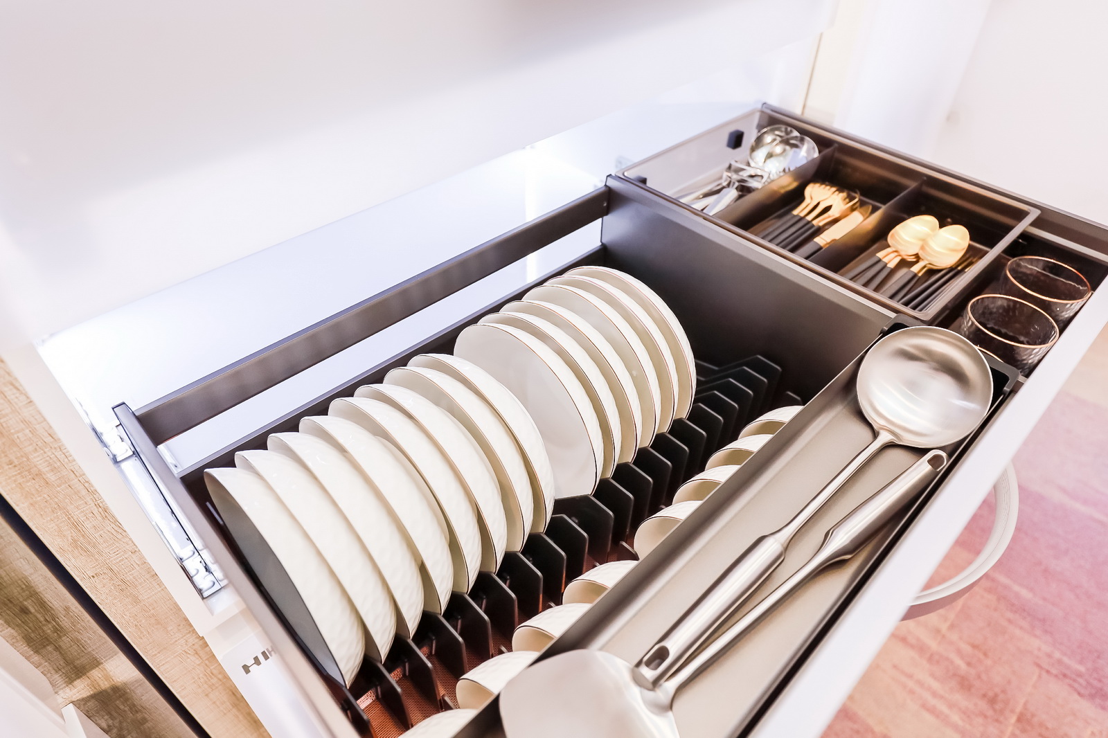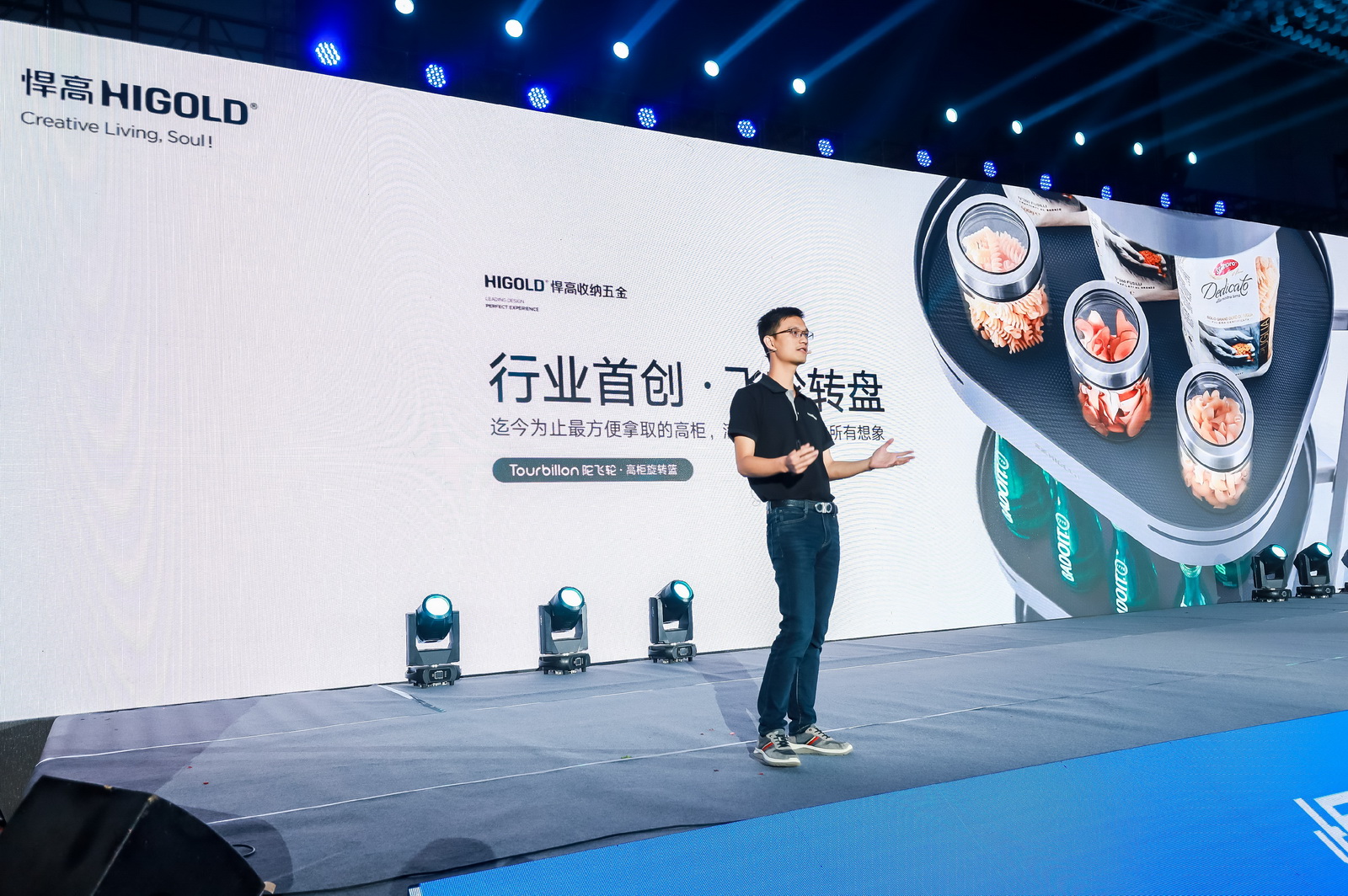 在发布会上由功能五金事业部带来一批2022年的重磅新品:不锈钢板式拉篮之皇的“艺术之作”基多拉、转盘可360°旋转的高柜旋转拉篮陀飞轮以及斩获红点设计大奖和IF设计大奖双项国际设计大奖的希勒4.0。