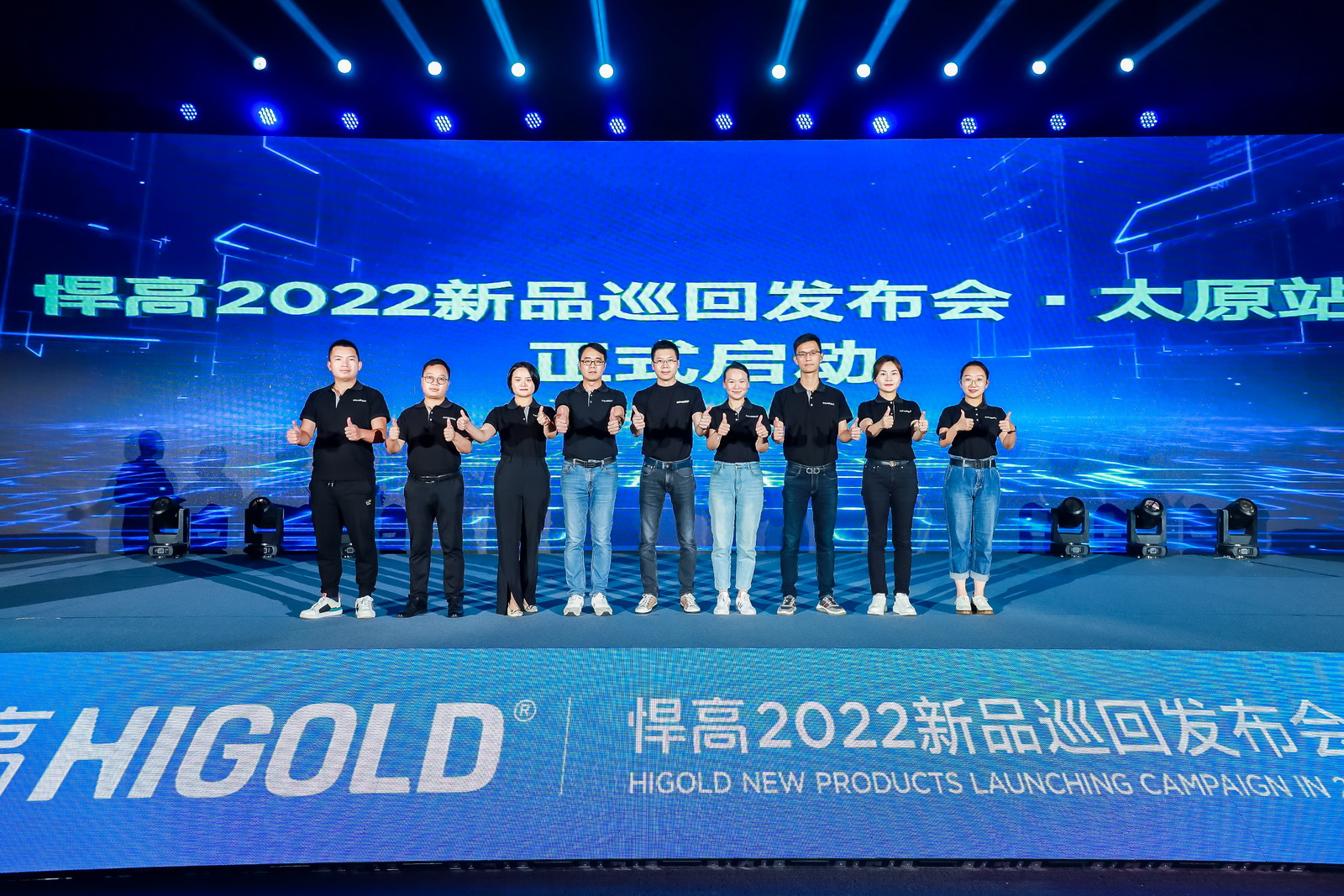 当日新品发布会现场,悍高集团高层领导共同参与2022年悍高全国巡回新品发布会第十三站太原站的启动仪式。