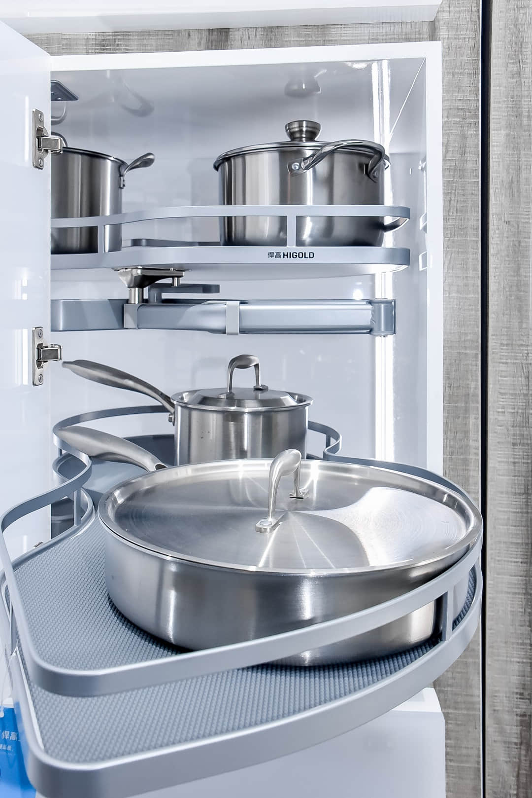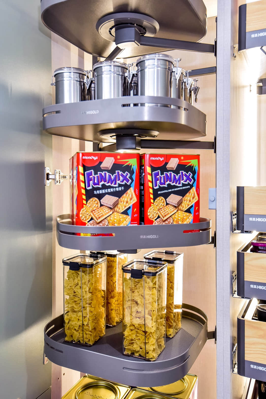 比如有云感升降、高柜取物便捷的星云升降机、行业首创的360°高柜旋转拉篮陀飞轮以及荣获红点设计大奖和IF设计大奖的双项国际设计大奖的希勒4.0系列拉篮;有重塑厨房收纳空间、一槽整合多项厨房工作的厚面板单槽BL2.0水槽、0.6cm纤薄窄槽的柔光嵌入式槽灯等系列的明星产品。