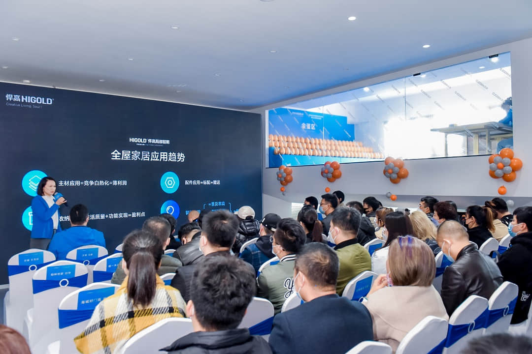 在新品品鉴会上,分别由悍高集团功能五金事业部、智能厨具事业部、装饰五金事业部、智能厨电事业部的负责人们演讲发布悍高2022年新品,带领到场的嘉宾和客户探索多元的五金美学符号,感受低调奢雅的设计之美。