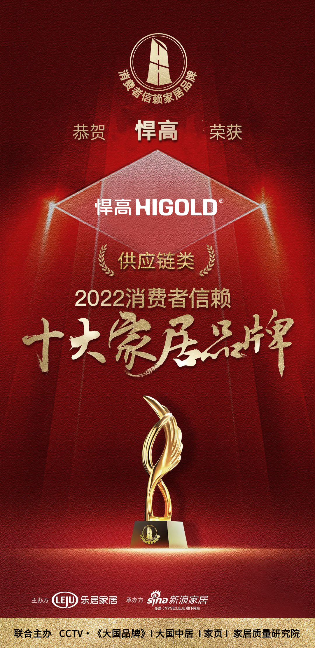 近日,悍高集团凭借自身卓越实力荣登“2022消费者信赖十大家居品牌”供应链类榜单!本次评选活动由乐居家居、新浪家居、CCTV《大国品牌》等单位联合主办。成功获此殊荣,是行业和消费者对悍高产品的高度认可,彰显了强劲的品牌竞争力和悍高稳步向前的发展新态势!