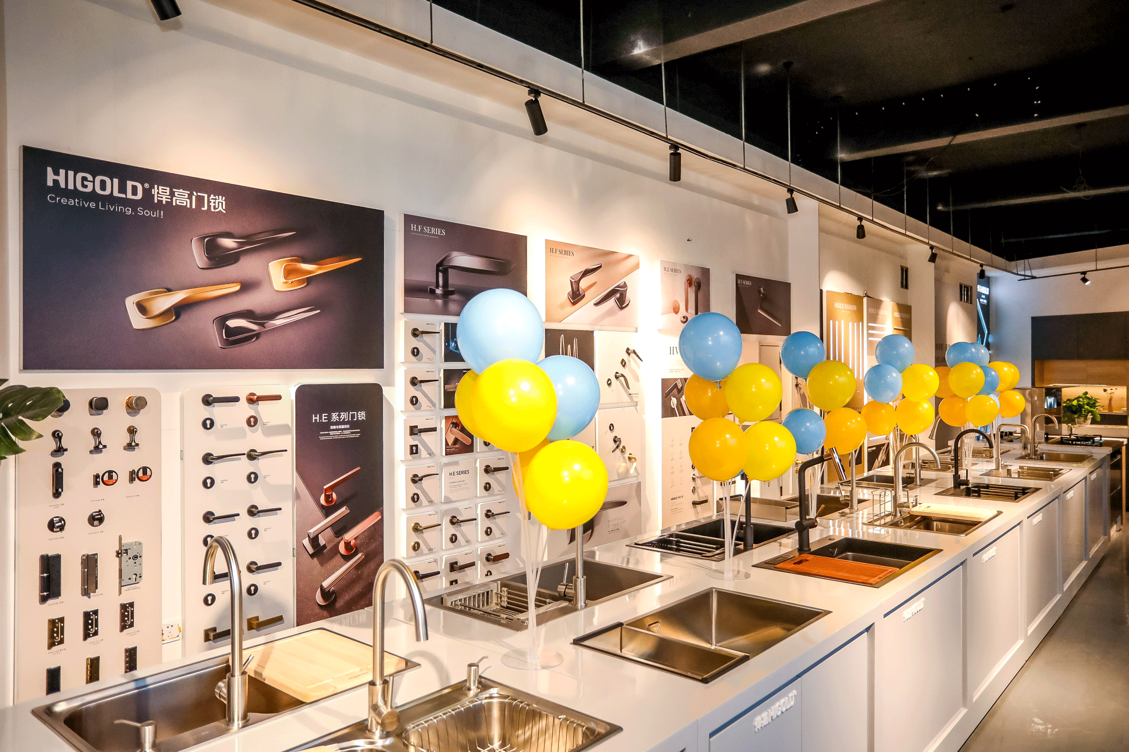 悍高南昌旗舰店全新升级开业,从门头门面、展厅布局、上样产品全方位提升,整个展厅空间焕新规划分为厨房功能五金、衣柜功能五金、基础五金、水槽龙头、装饰五金、智能厨电区域,给消费者更优质、沉浸式的到店选品体验。