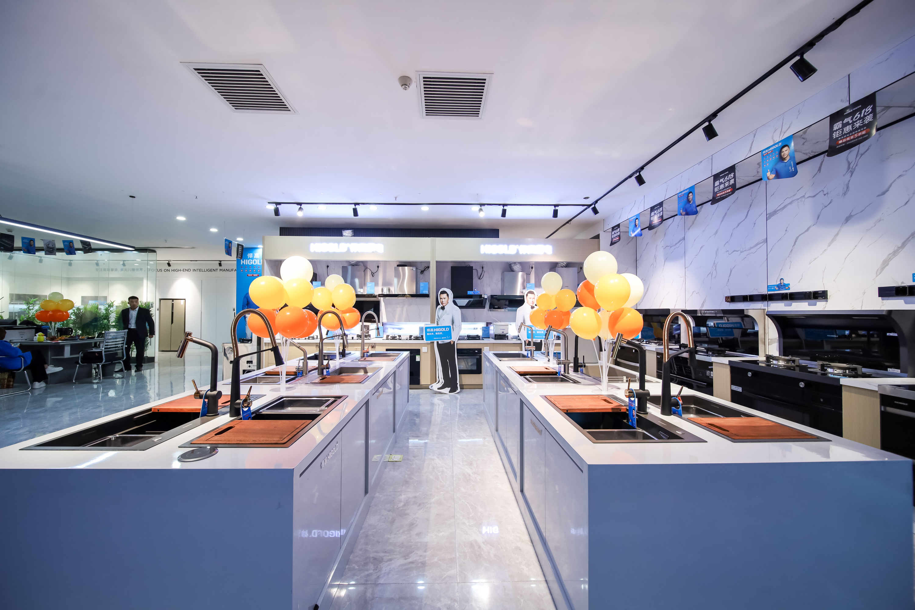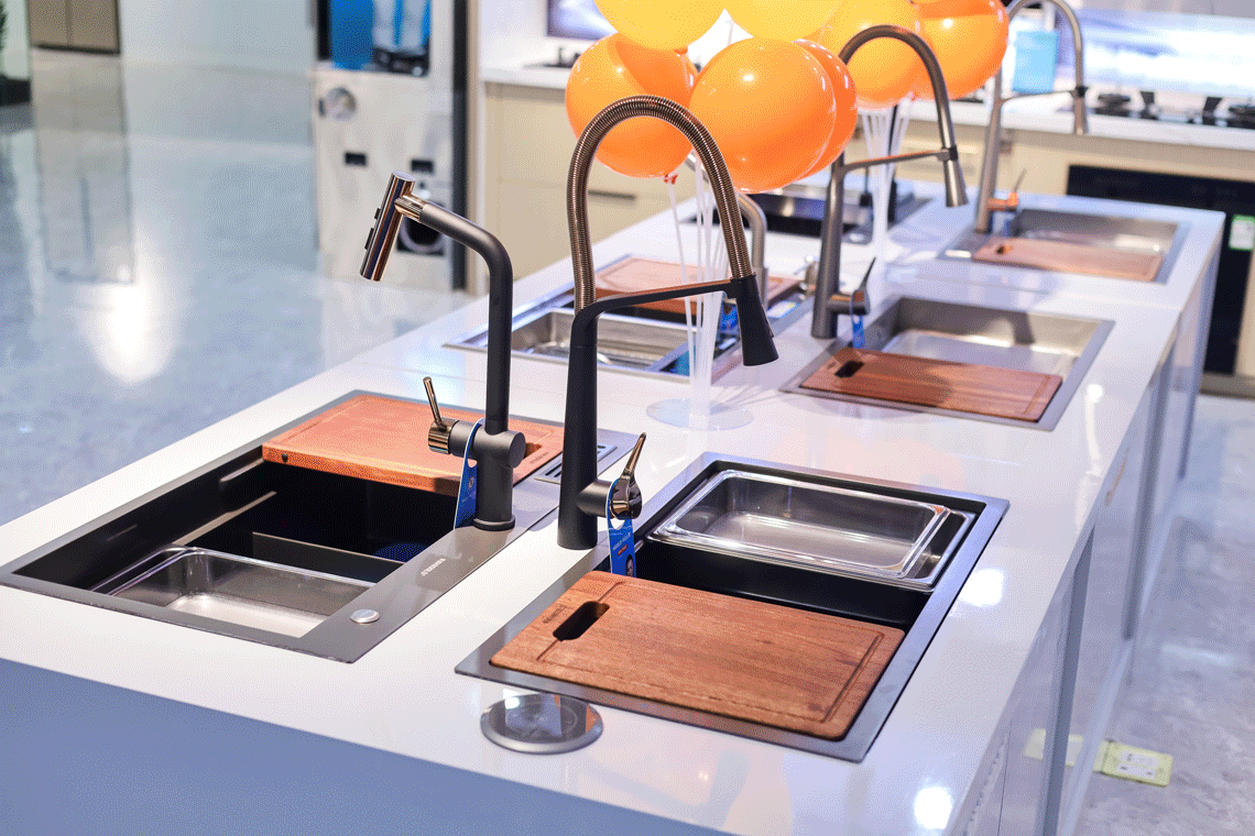 悍高滁州旗舰店全新升级开业,从门头门面、展厅布局、上样产品全方位提升,整个展厅空间焕新规划分为厨房功能五金、衣柜功能五金、基础五金、水槽龙头、装饰五金、智能厨电区域,给消费者更优质、沉浸式的到店选品体验。