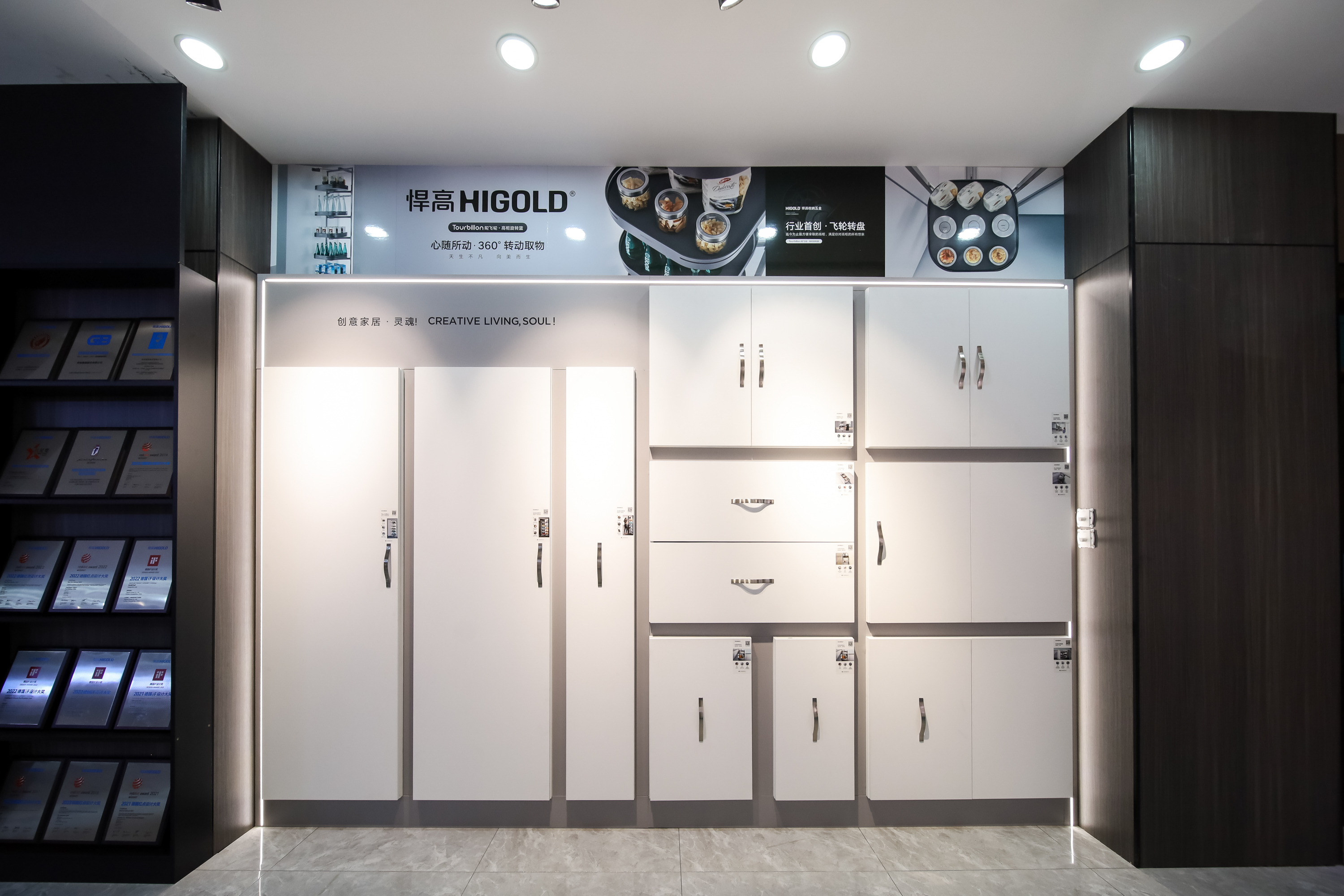 本次发布会现场分享了悍高功能五金、智能厨具的2022系列新品:行业首创的360°转盘高柜系统陀飞轮系列、云感推拉随意悬停的高柜系统星云升降机、荣获年度国际双料大奖的BN2.0龙头、一槽重塑厨房收纳空间的BL2.0多功能收纳水槽等。