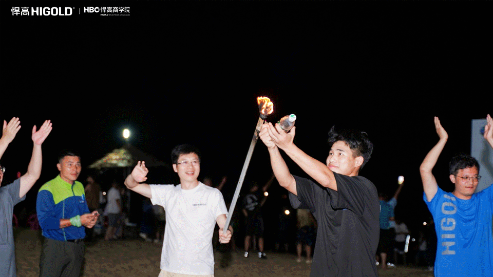 紧张的游戏之后,迎来了美好的放松时刻,随着汪总点燃篝火,此起彼伏的火焰如众人心中的激情般热烈,一杯酒向天,一生情向心,一首歌向你,一挽手向前。