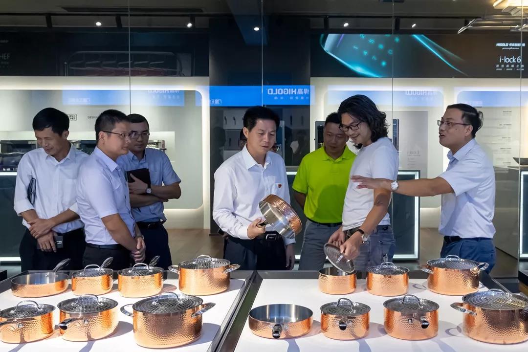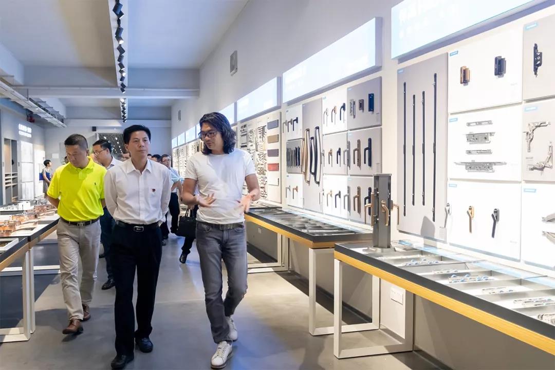 彭区长一行参观了悍高集团的星际功能五金展厅、基础五金展厅、智能家居展厅、户外家具展厅,