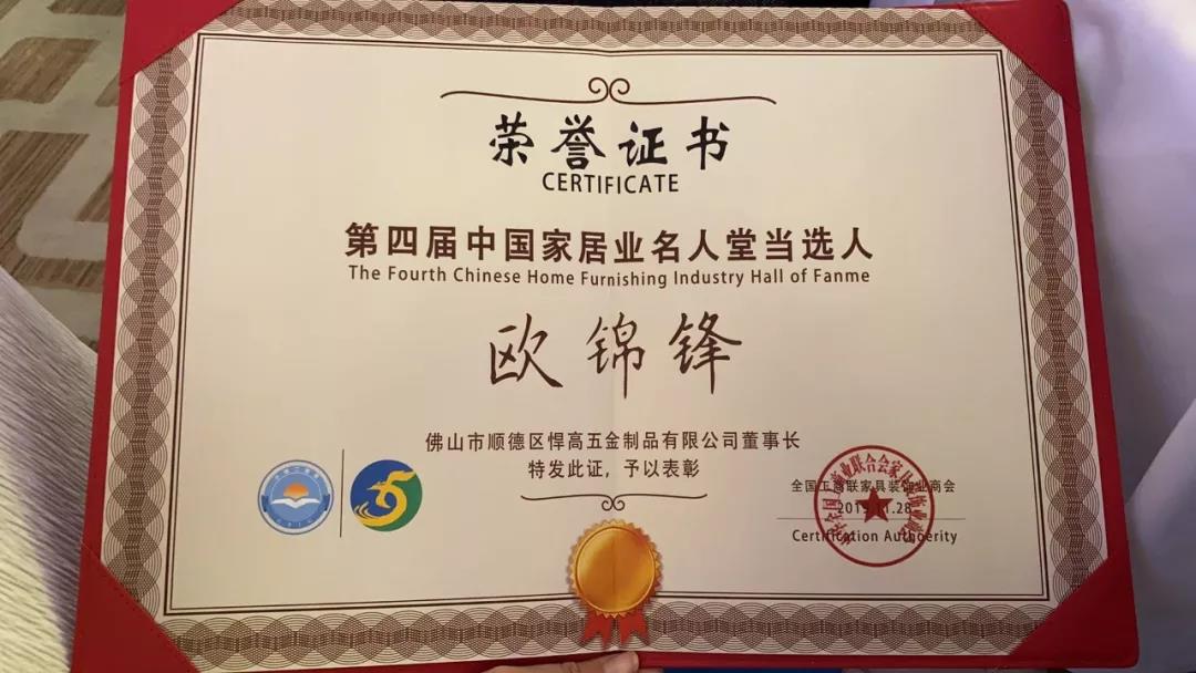 悍高集团董事长欧锦锋以杰出的行业贡献成为本届“中国家居业名人堂”当选者,摘得家居业的最高荣誉!