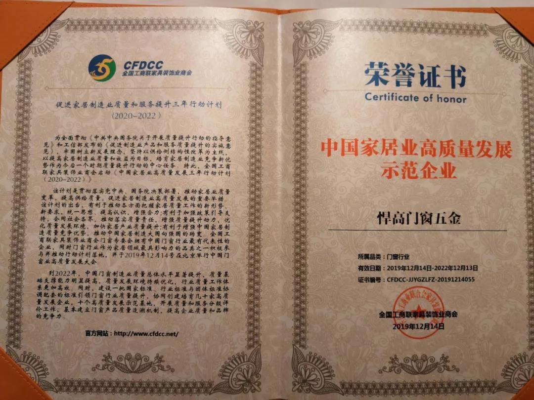 悍高集团作为门窗五金行业中的“黑马”,不仅获得业内高度好评,更于本次盛会上斩获了多项荣誉。