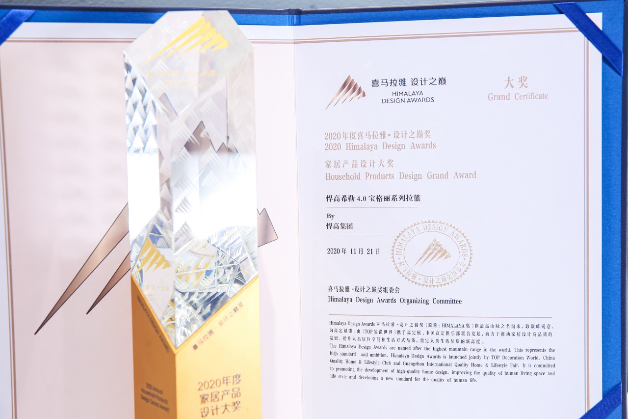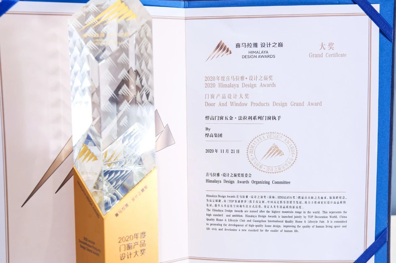 其中悍高集团产品荣获两枚大奖,分别是2020年度家居产品设计大奖与2020年度唯一门窗产品设计大奖。