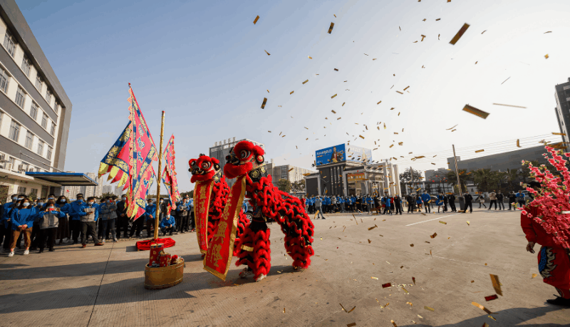 “醒狮贺岁、开工大吉”,悍高集团星际总部鞭炮齐鸣、锣鼓喧天、醒狮起舞、祥瑞高照,