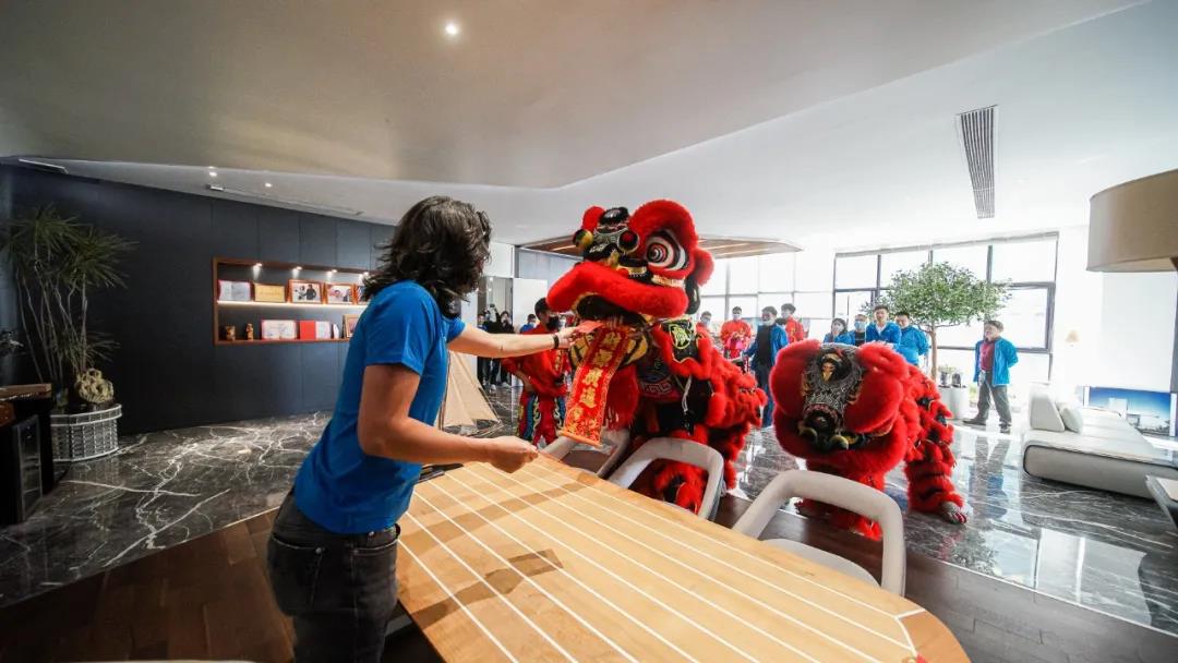 一路锣鼓喧天,鞭炮齐鸣,醒狮将吉祥如意的“好彩头”传遍悍高星际总部的每一个角落,