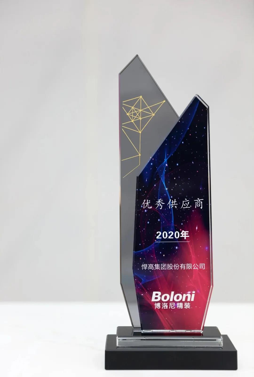 作为深耕行业17年的悍高集团,荣获此项奖项,是博洛尼对过往双方合作的充分认可。在未来,悍高集团与博洛尼等定制企业保持合作,以优质的产品和服务回馈各战略合作伙伴的支持和信任。愿狗子28 互利互信,携手并进,2021,共踏新征程!