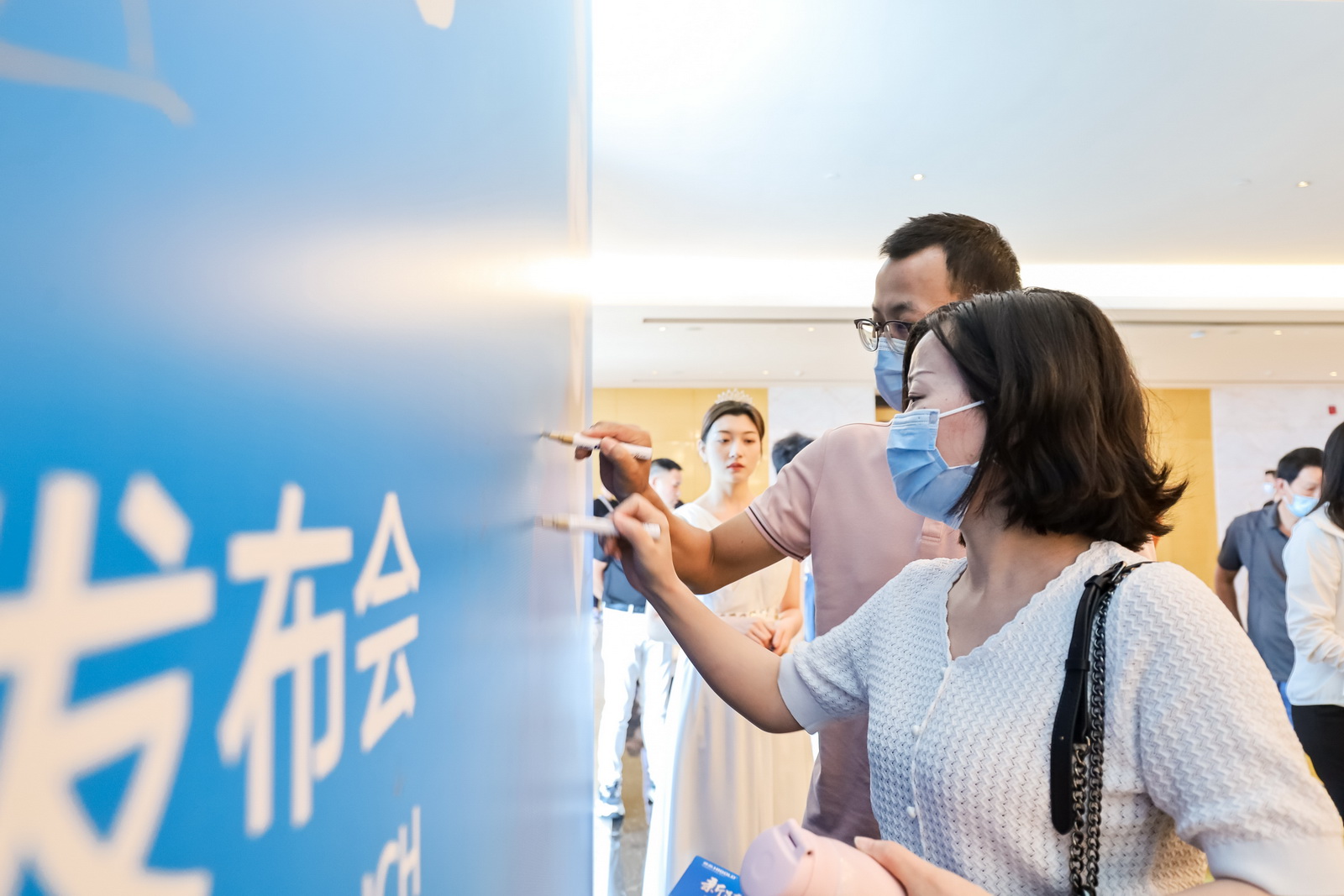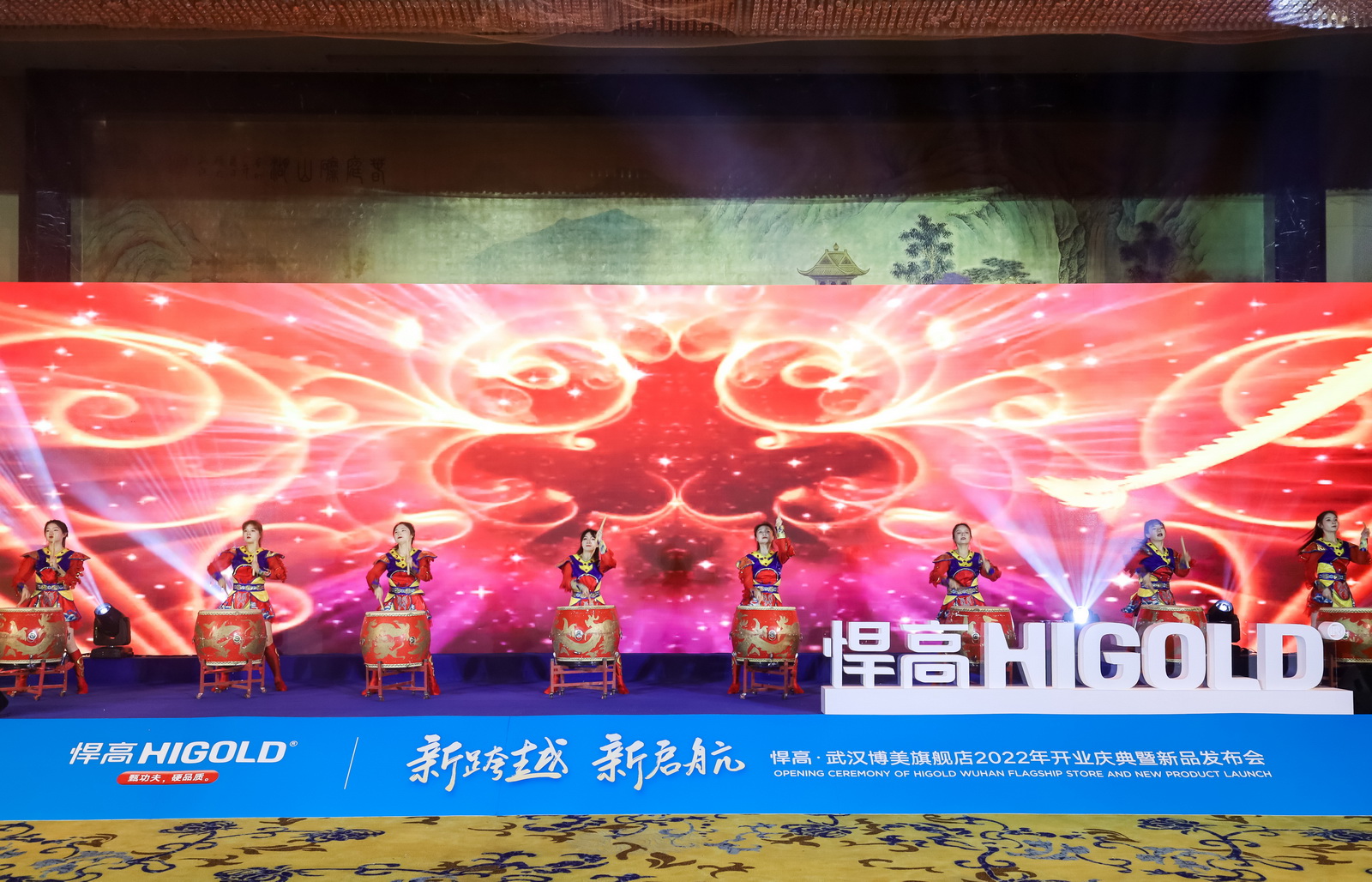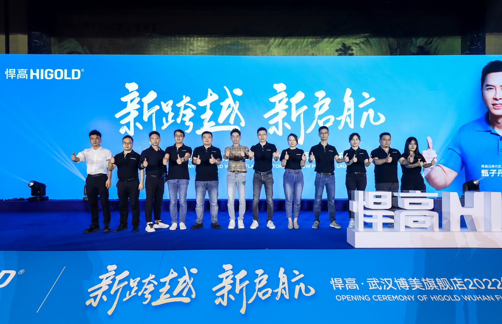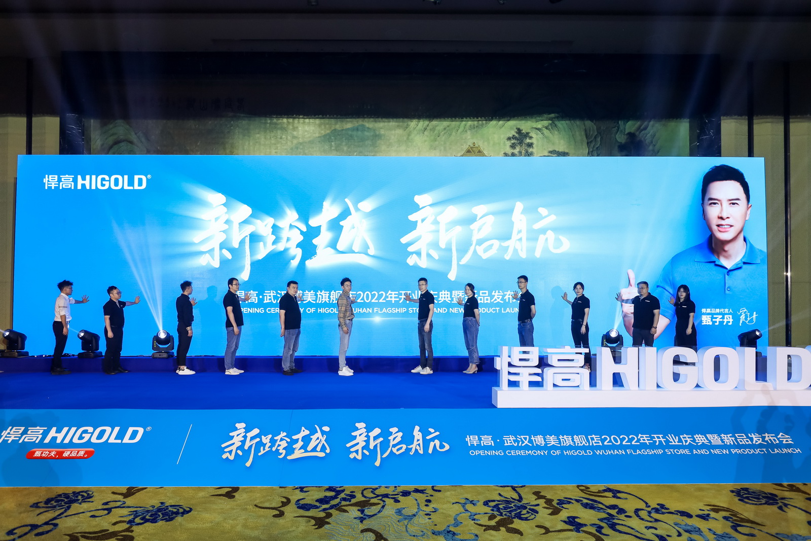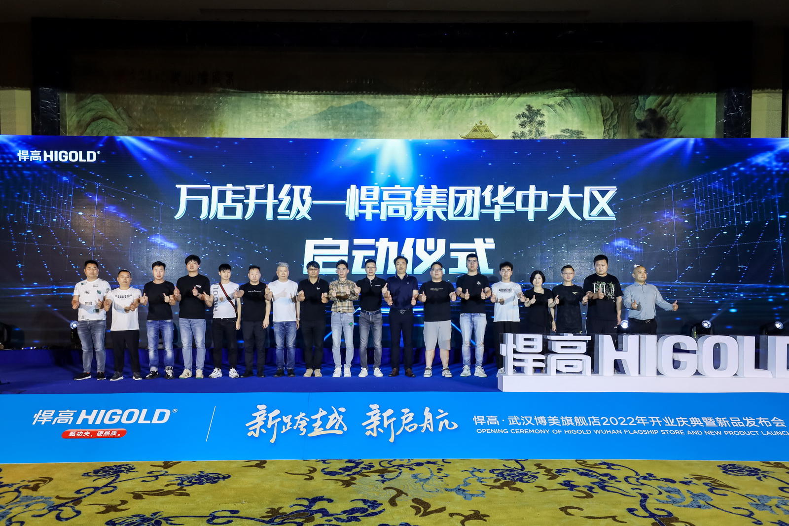 新品发布会现场,悍高集团功能五金事业部总经理汪宝春、悍高各事业部高层领导携手悍高武汉博美旗舰店总经理吴大洲正式启动悍高集团“万店升级”武汉博美旗舰店开业庆典暨2022年新品发布会,稍后到场经销商合作伙伴共同启动“万店升级”悍高集团华中大区仪式。