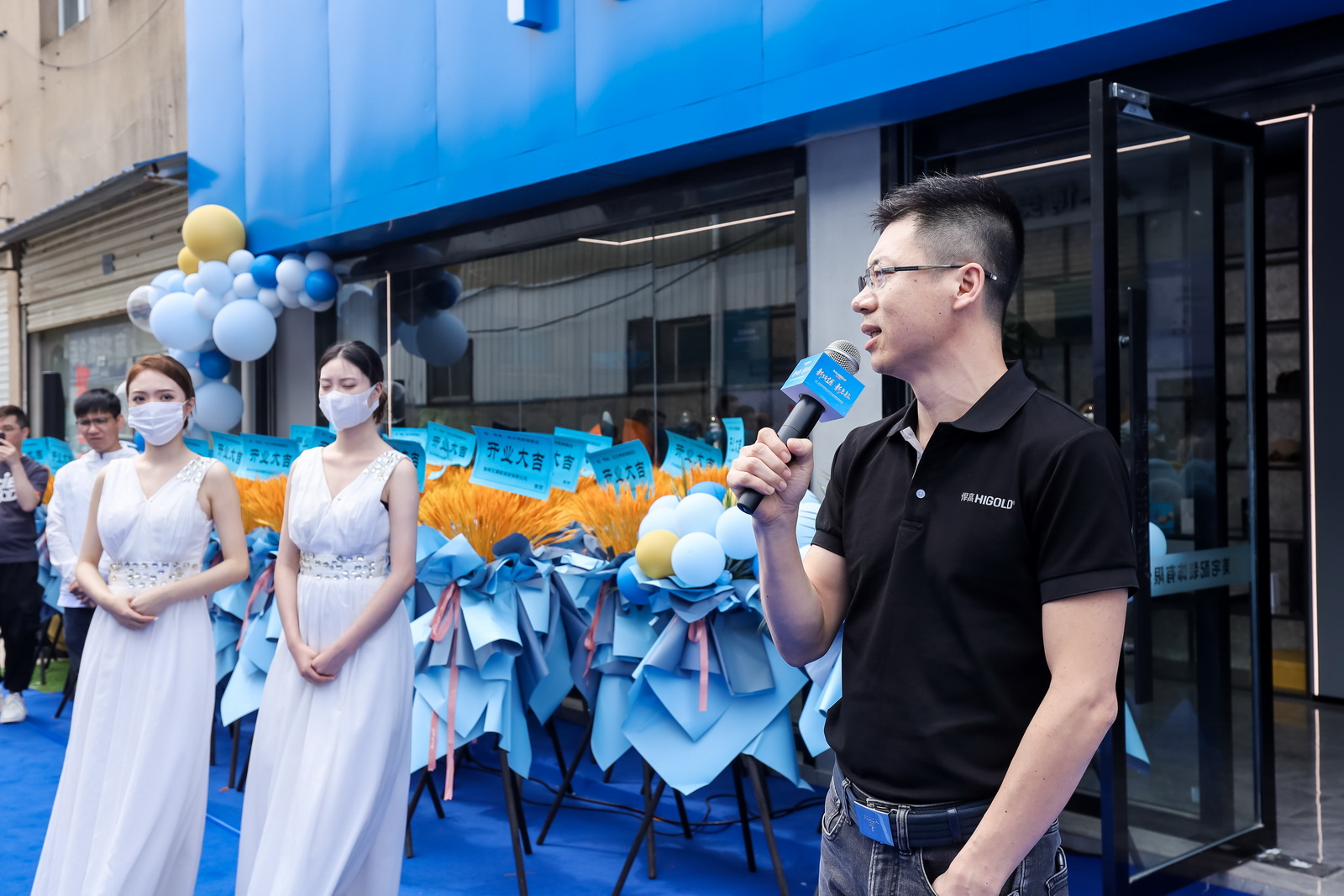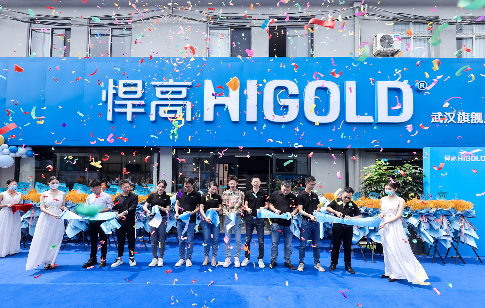 开业庆典现场,悍高集团功能五金事业部总经理汪宝春与悍高各事业部高层领导莅临悍高武汉博美旗舰店,携手悍高武汉博美旗舰店总经理吴大洲共同庆贺旗舰店开业,并为旗舰店送上诚挚祝福。