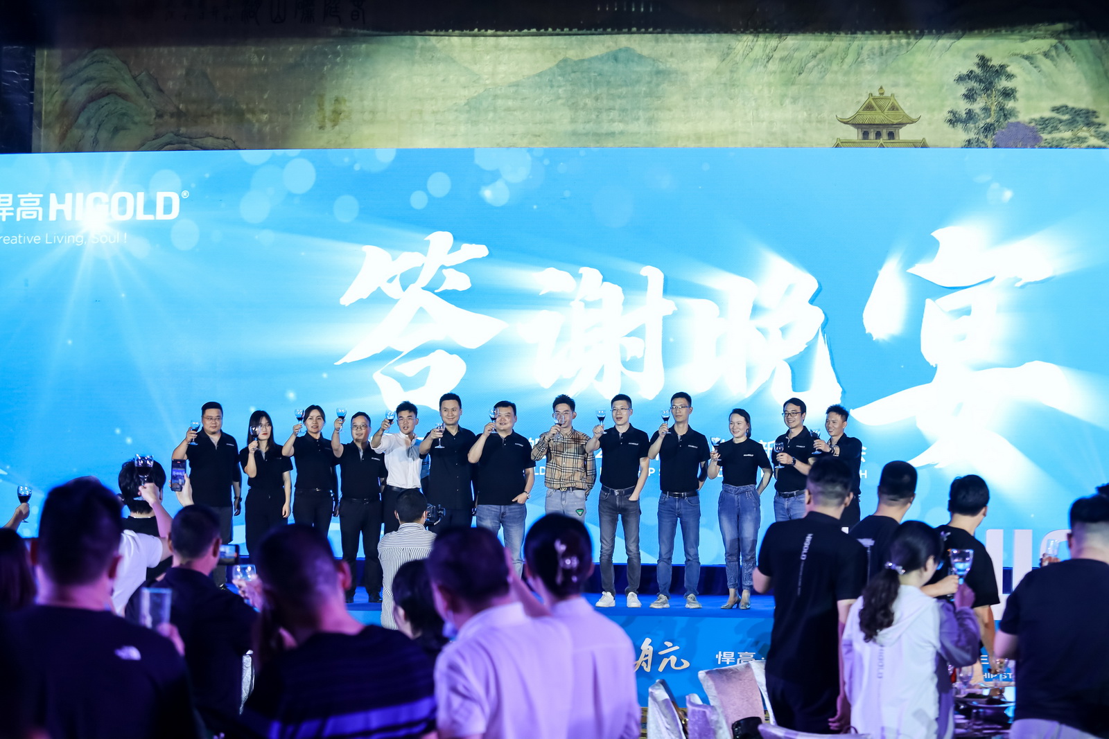 晚上晚宴伊始,悍高集团功能五金事业部总经理汪宝春、悍高各事业部高层领导携手悍高武汉博美旗舰店总经理吴大洲向在座客户嘉宾举杯祝酒,祝贺本次新品发布会圆满成功。