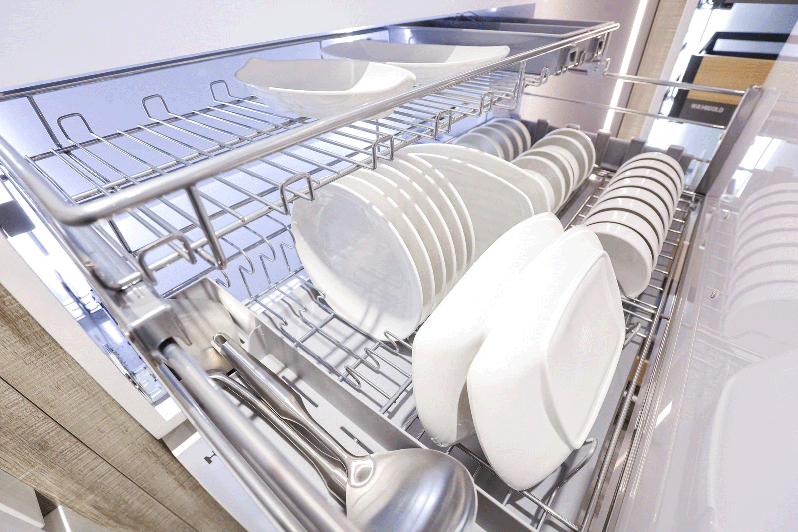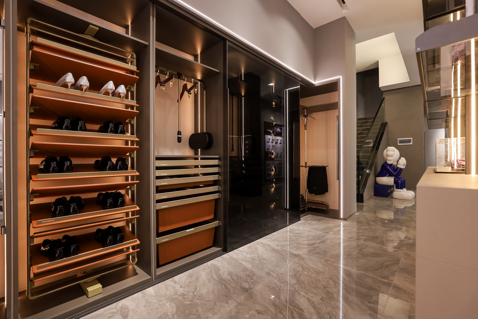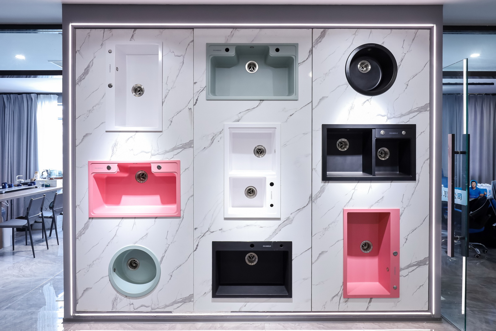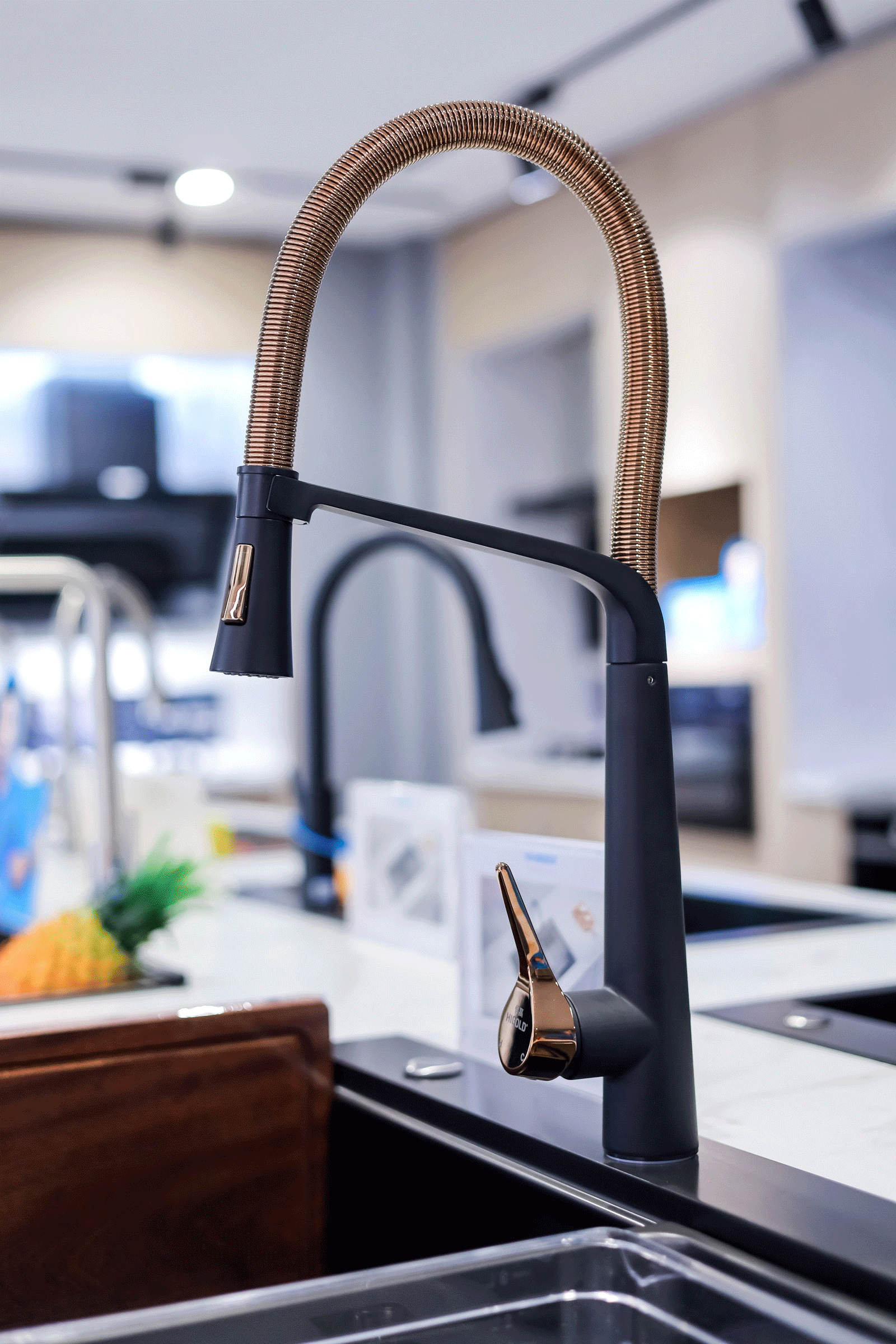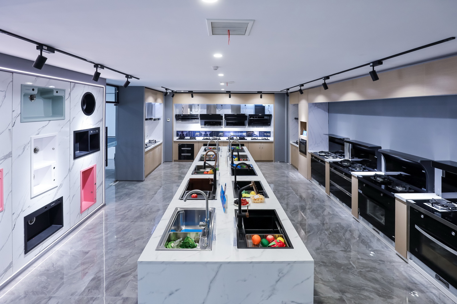 悍高武汉博美旗舰店展厅总面积近600平方米,分为上下两层。展厅一层陈列的是悍高厨房功能五金、衣柜功能五金、基础五金和装饰五金,展现了一站式功能五金产品,为每个客户提供了多种风格的功能五金体验,以满足不同的个性需求;二层是水槽龙头和智能厨电展示区,明晰的区域设计,展示了水槽、龙头、集成厨电等品类,为消费者提供了丰富、便捷的选购方式。