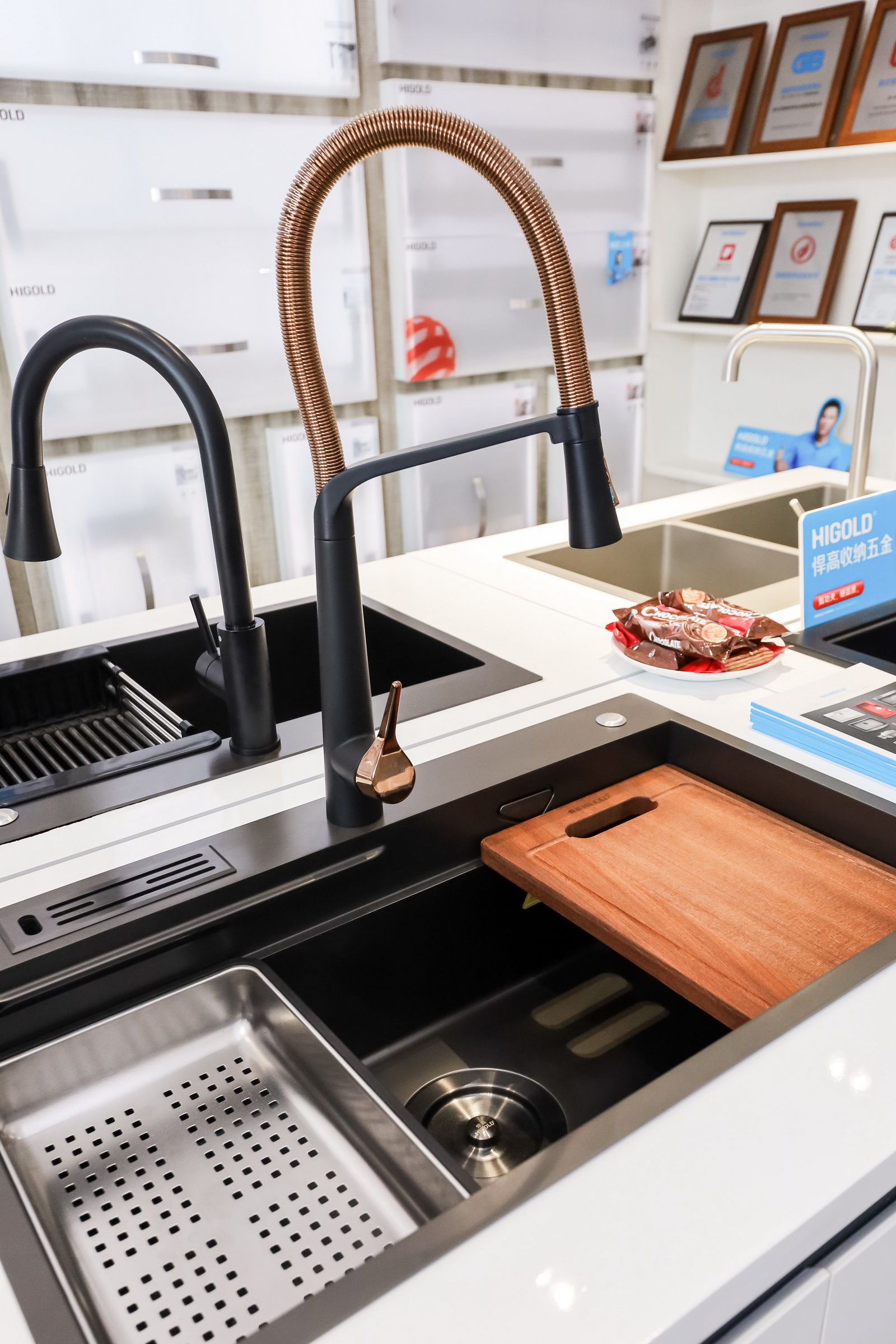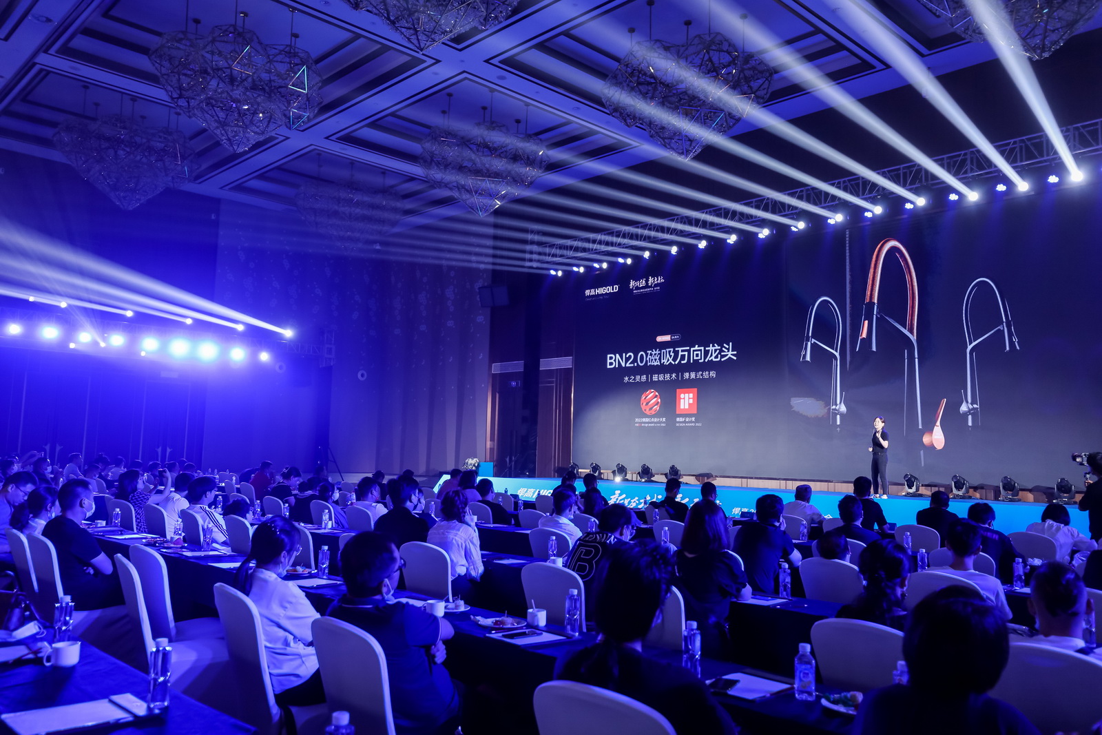 包括有厨房功能五金专利产品飞碟3.0,斩获国际红点设计大奖+iF设计大奖的希勒4.0,以及荣获本年度国际双料大奖的BN2.0龙头等,各事业部现场向与会嘉宾深度解读悍高明星产品在市场如何以美感和功能兼具的优势破局市场,多维度彰显悍高产品的匠心设计与精工品质。